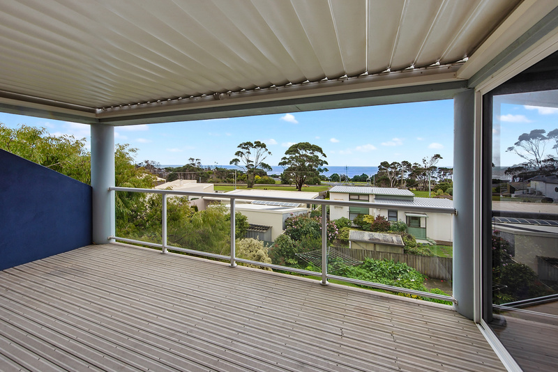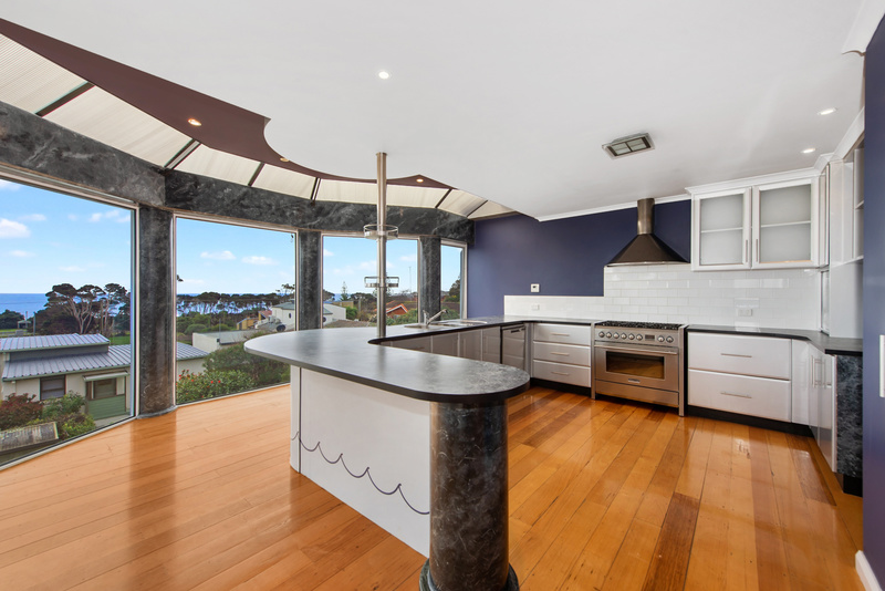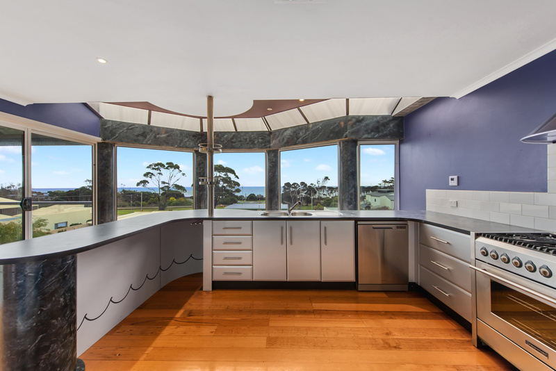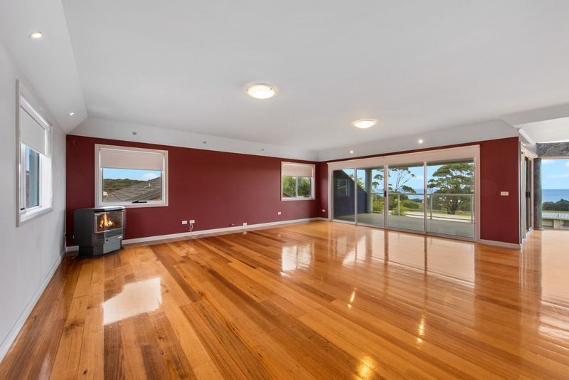 All rooms have polished Tassie hardwood floors as does the whole house. Going up the hand crafted stairway you enter a magnificent lounge/living area with an amazing view over Coles Beach and Bass Straight.