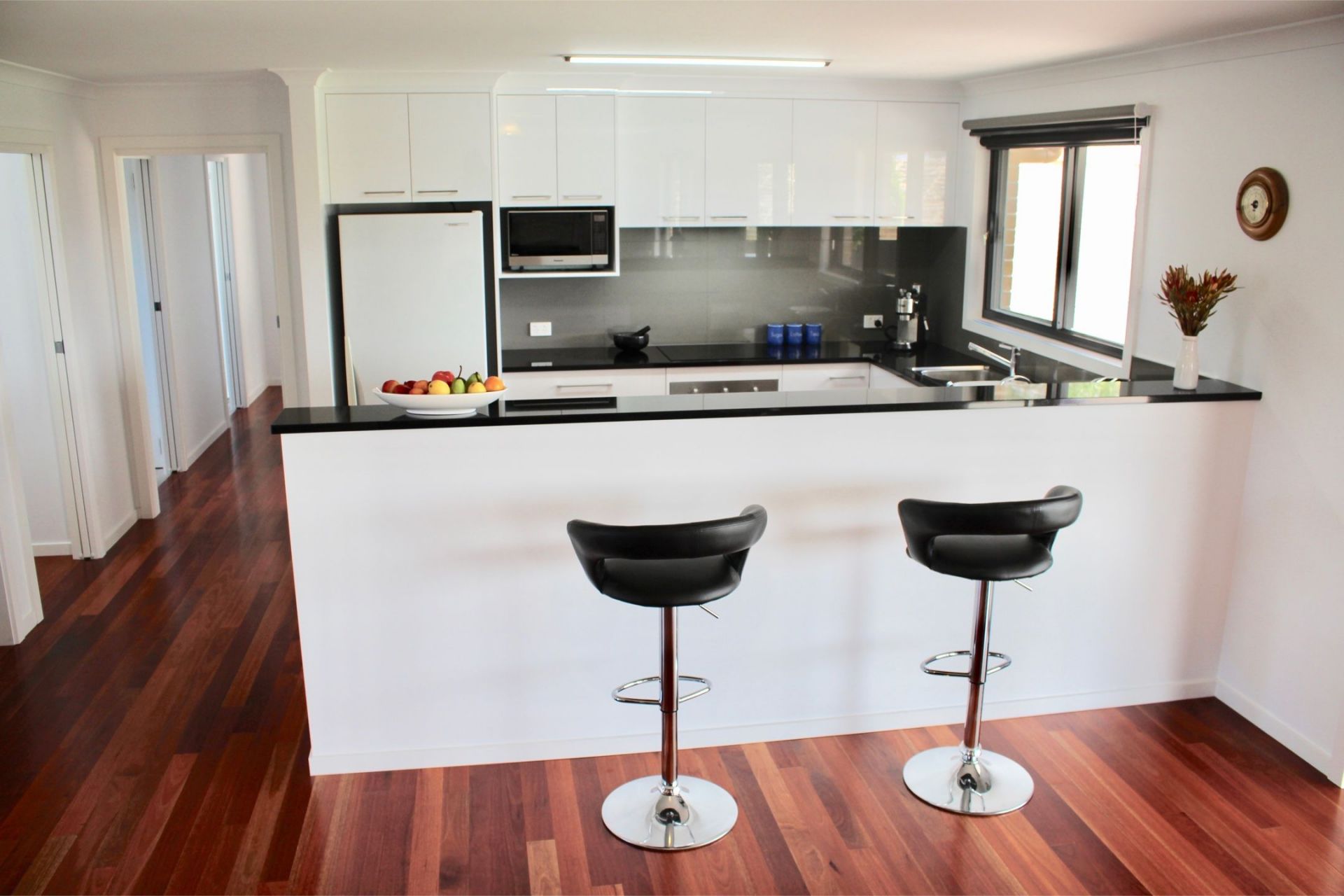 The home features an open plan design with stunning Sydney Bluegum solid timber flooring throughout the living areas and soft, luxurious carpets in the three bedrooms.
