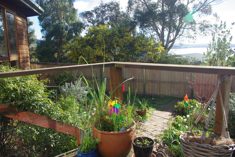 You'll be drawn outside onto the sunny deck for your morning coffee. Take a seat and gaze out over a cottage garden full of beautiful flowers, with views to the Mountain and North West bay.