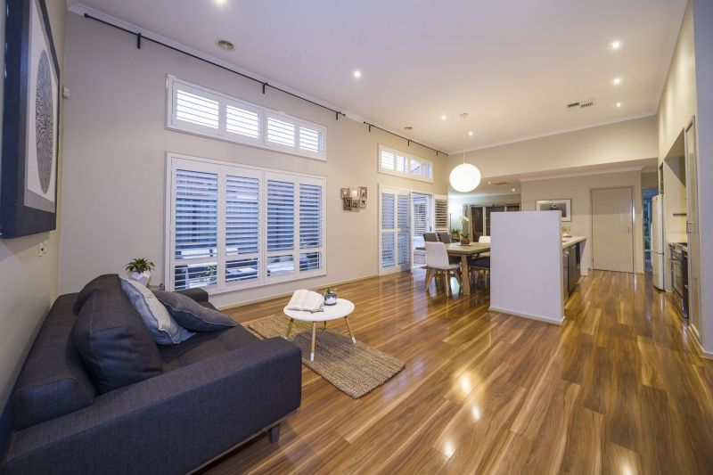 Other stand out features are the impressive high ceilings enhanced by plantation shutters enveloping the open plan lounge / dining area.