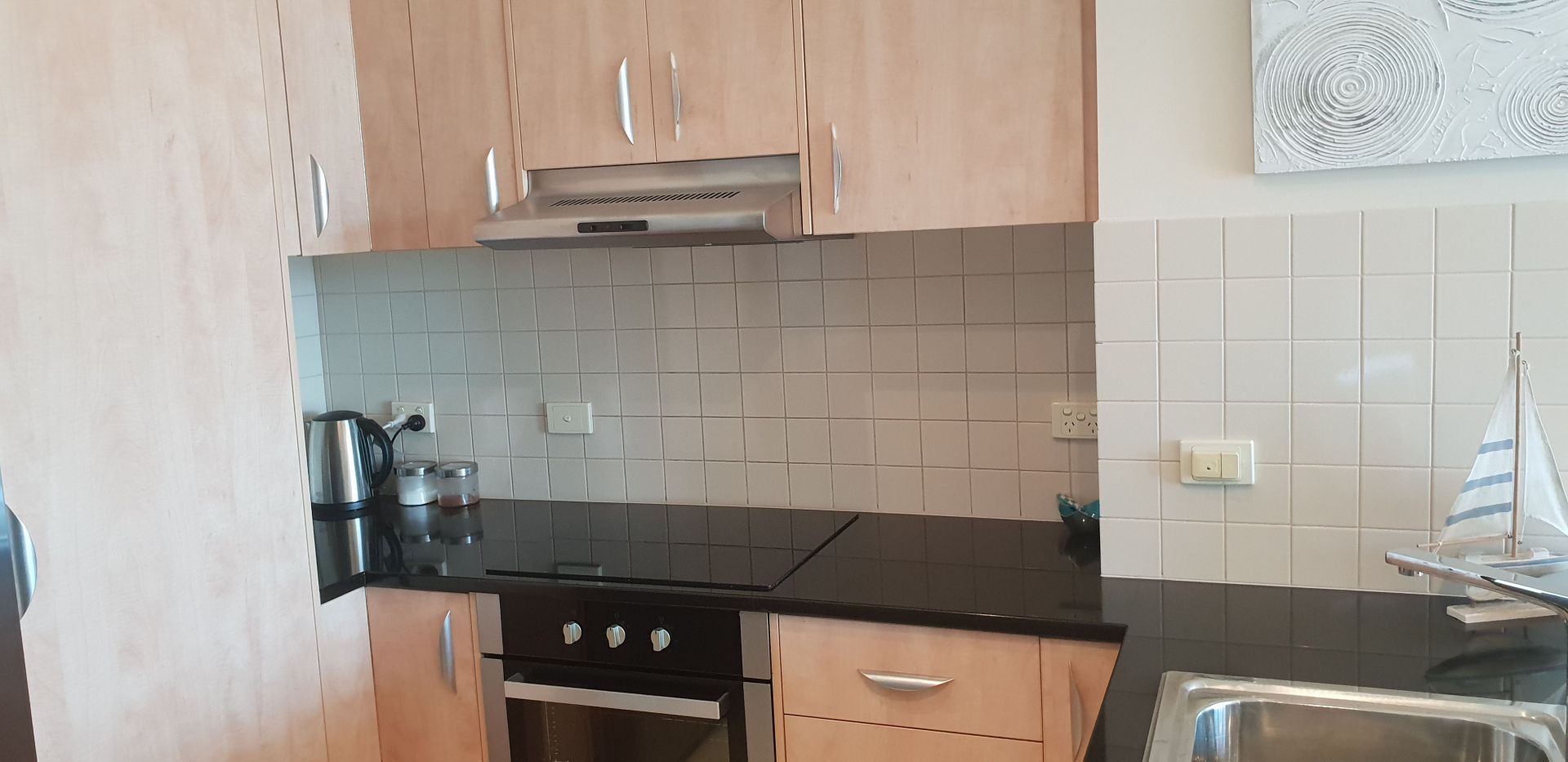 The kitchen, overlooking the dining and living area, is superbly equipped with sparkling new stainless steel appliances and new double bowl sink with polished black stone benchtops. There is a separate full laundry nook with bifold doors and linen storage cupboard.
