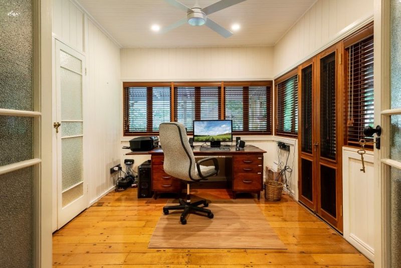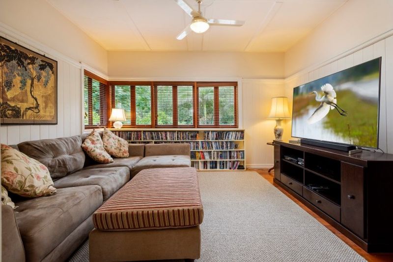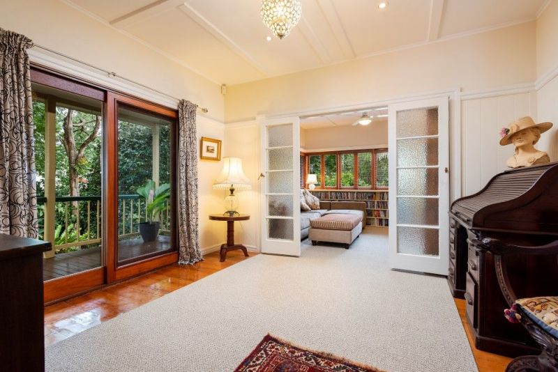 Three of the bedrooms have access to the outside decks and verandas. Two of them also have connecting access, which allows remarkable flexibility for a nursery, dressing room, or office. With more than 440 sqm undercover, there is space for the family. A large open, well-lit dining/lounge gives on to a deck, ideal for entertaining. A spacious studio adds room to be creative or run a business or add an extra bedroom. A second double-garage or workshop is attached. The house has been sympathetically renovated, to maintain the character of this original 1930s Queenslander home.