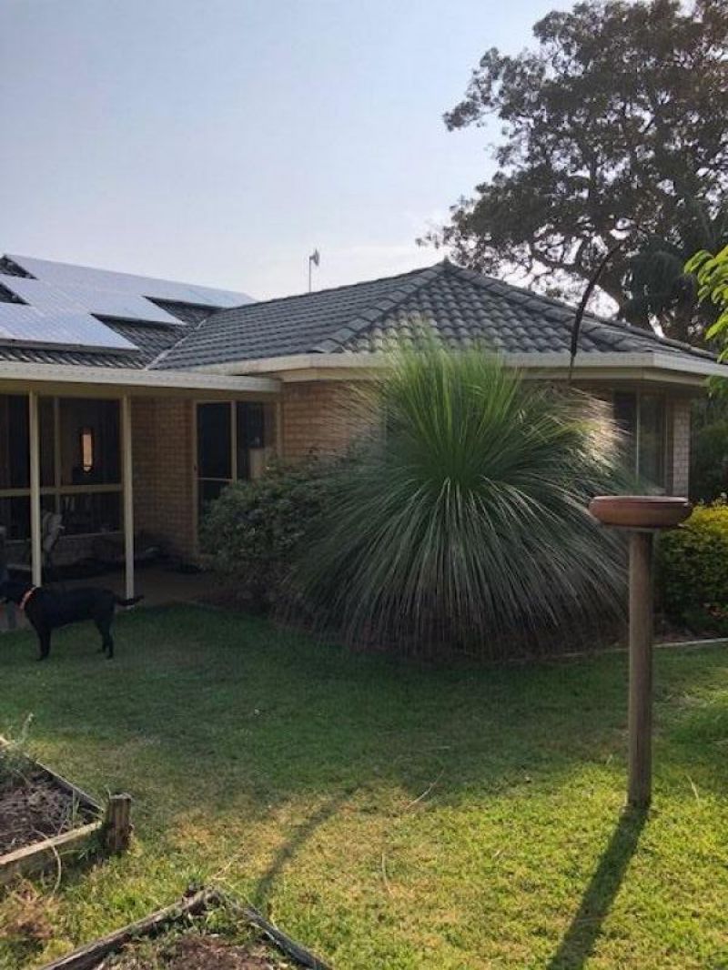 The house is surrounded by beautiful gardens. There are many fruit trees as well as ornamental plants on a 1144 square meter flat block.