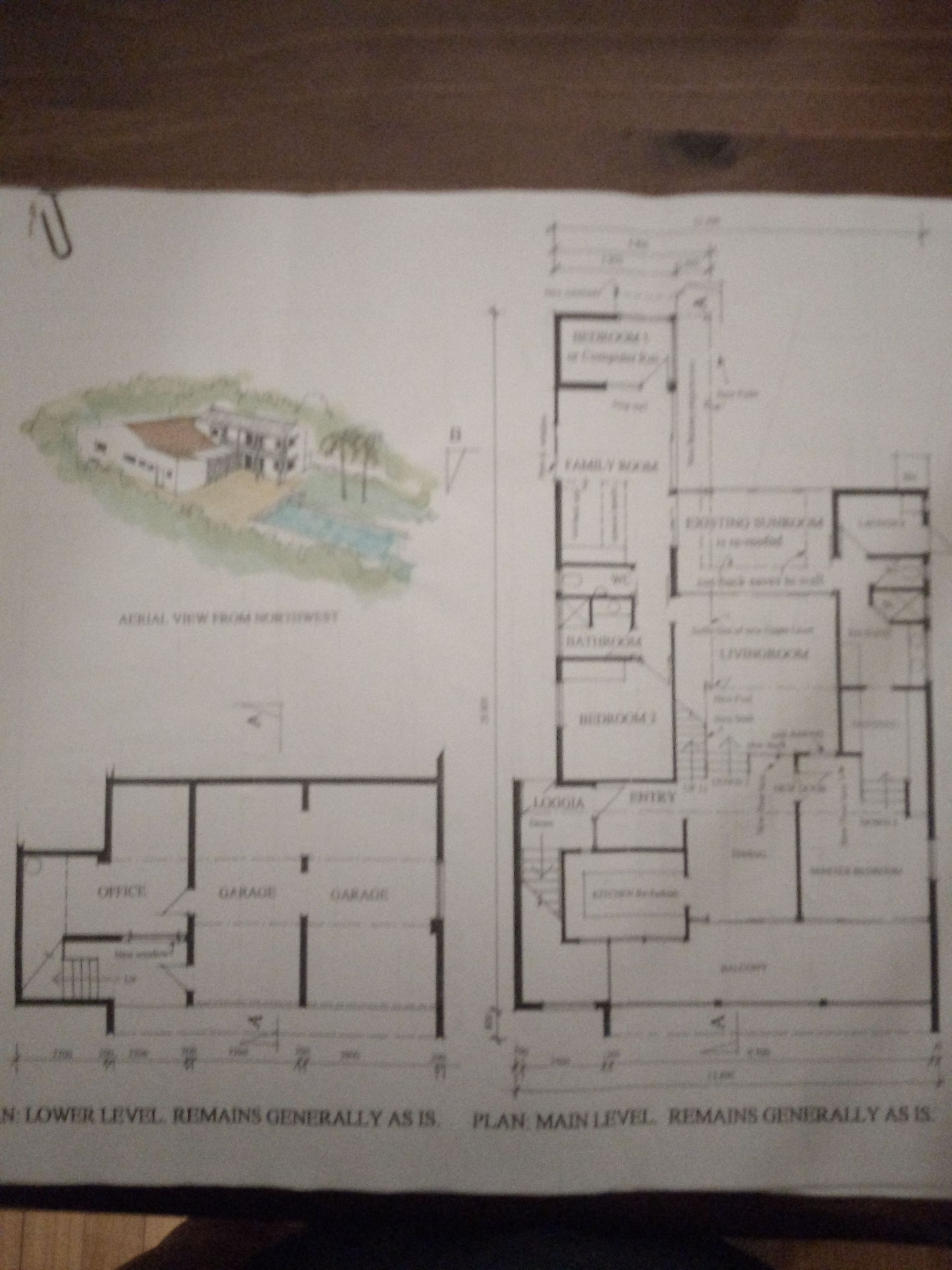 modern kitchen area and large office down stairs which was a home business on a semi through road .