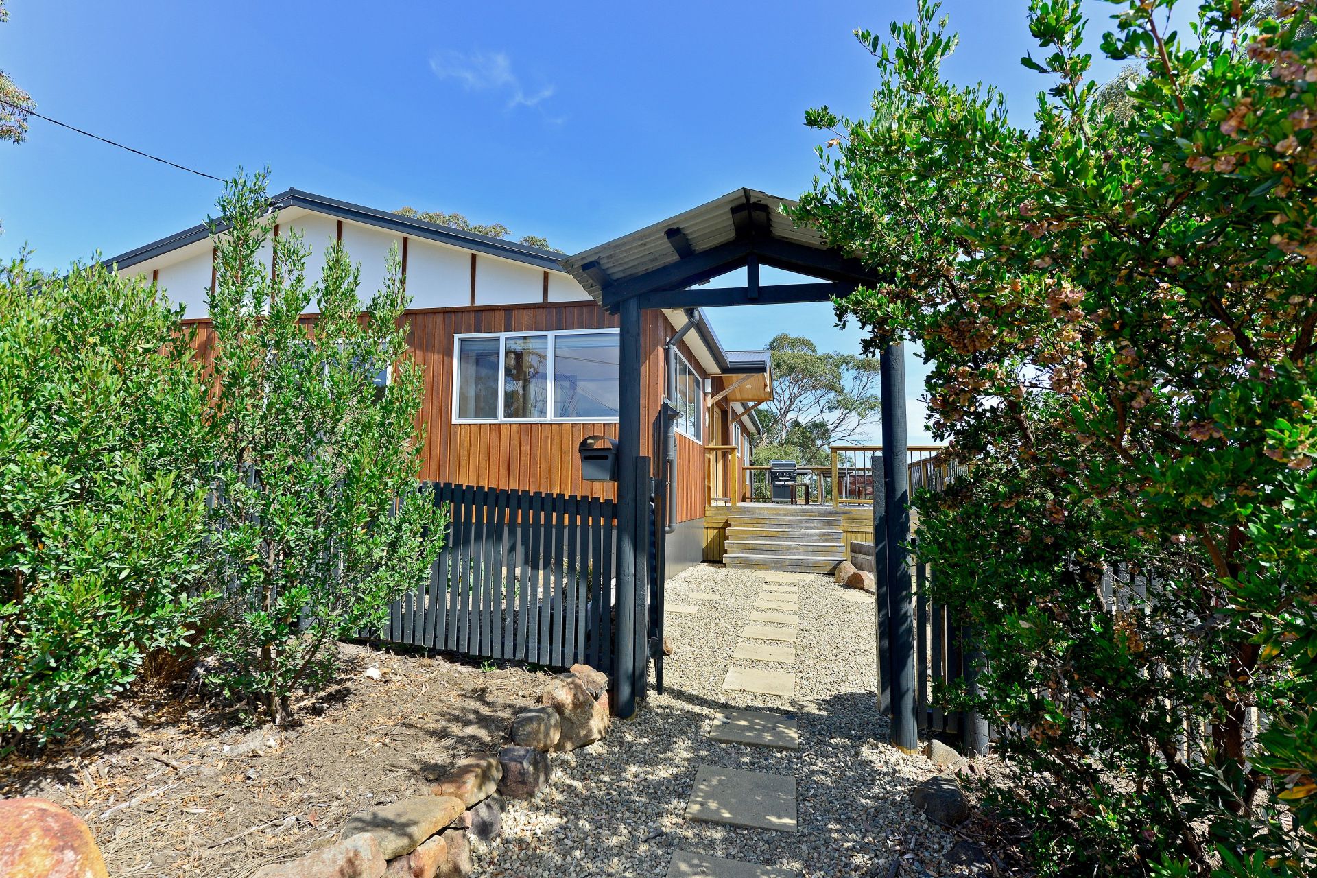 - Stylish house entry, with matching gate and house roof feature creating a welcoming entrance;