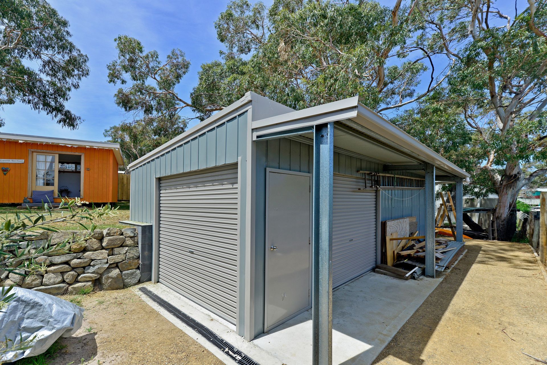 - Large newly built shed (8x4m), with concrete floor and covered outdoor concrete workspace, power, separate water tank and pump for house, garden or yard;