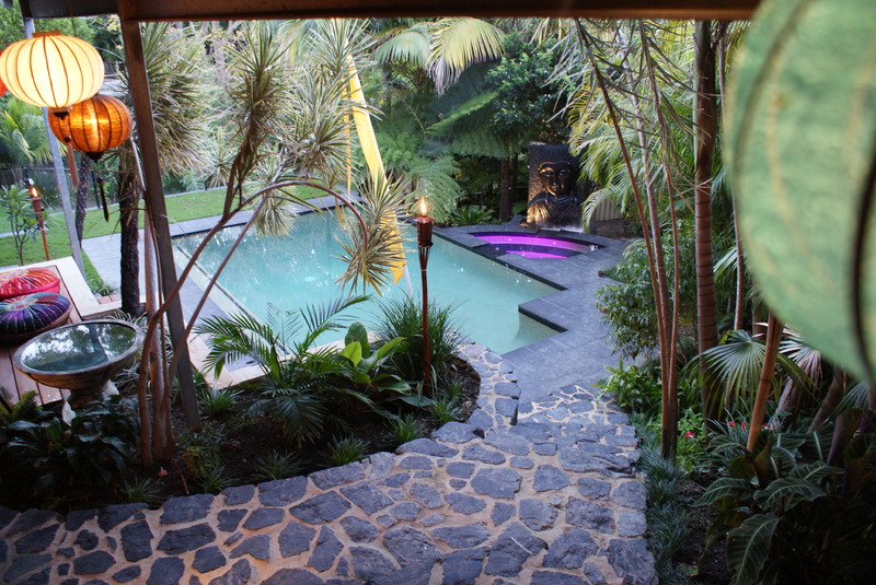 Take the spiral staircase to a secret entertaining hideaway that will take your breath away. This perfect poolside sanctuary and stunning resort style solar heated pool and spa is kept private and secluded by established designer tropical gardens. Bluestone paving leads you to exotic hardwood timber decks and entertaining pavilion. Water features and a wall of soft curtaining give a sense of decadence and offer a stunning, peaceful environment ideal for relaxation and meditation. The area is complete with its own massage deck, quality outdoor speakers to create that perfect ambience, an outdoor Bali style toilet/powder room and 350-bottle temperature controlled wine cellar with storage.