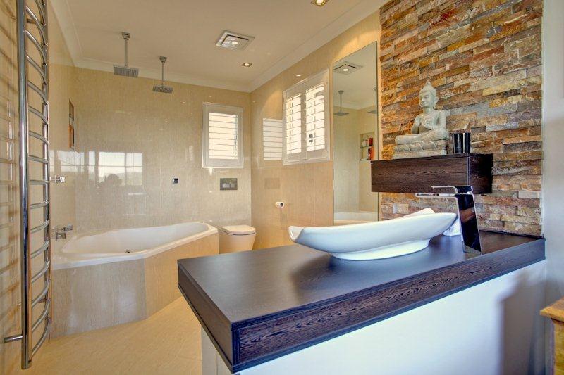 The storage and design ideas that have been incorporated in the floor plan are intelligent; downstairs are three more bedrooms, one with its own secret concealed entrance behind a bookshelf, which would make a perfect office. All the bedrooms have quality built in mirror wardrobes. The laundry and a third bathroom are also on this ground level, along with a large theater games room, which also has stunning mountain and pool/garden views.