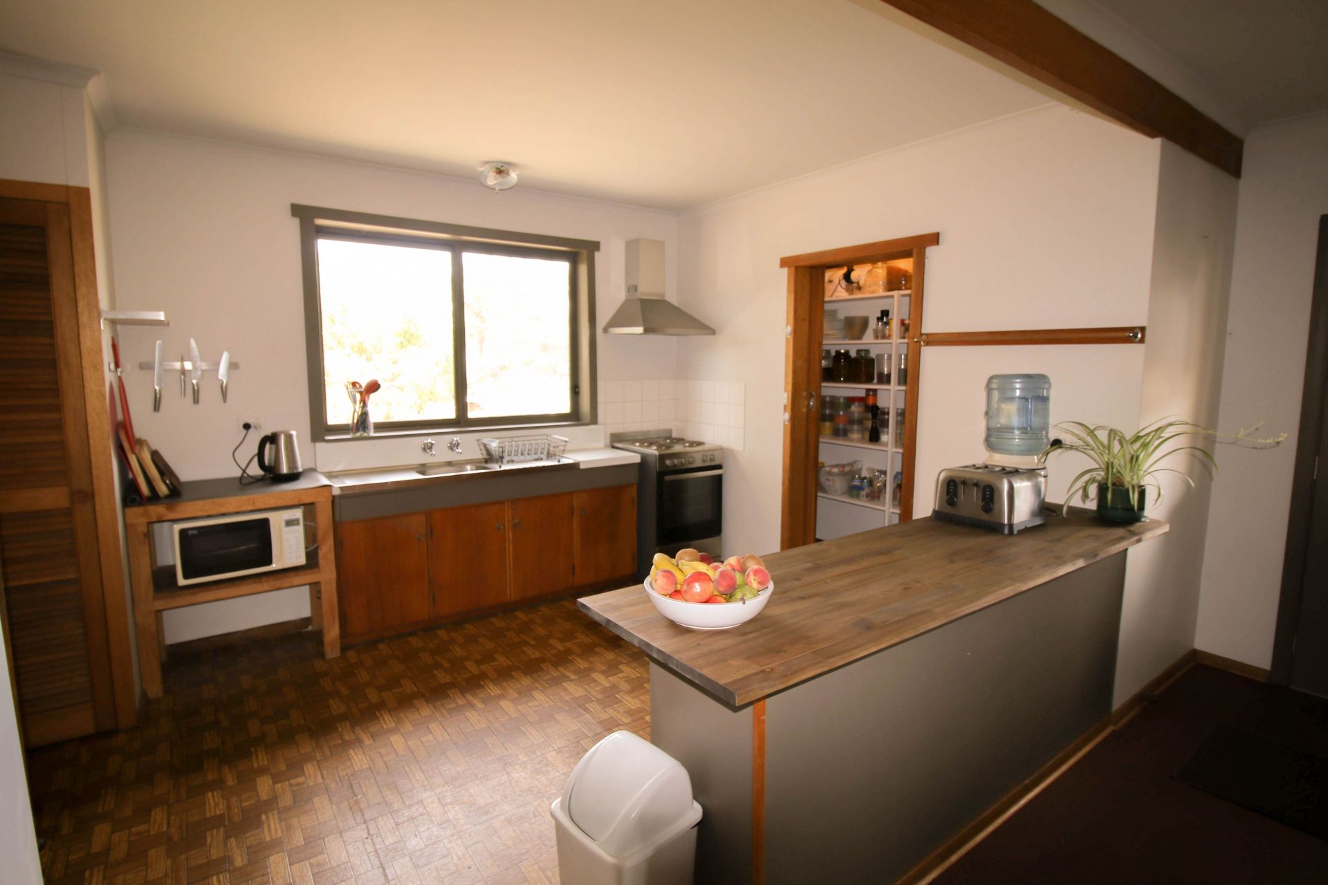 - generous and functional older style kitchen with a large walk-in pantry and ample cupboard spaces.