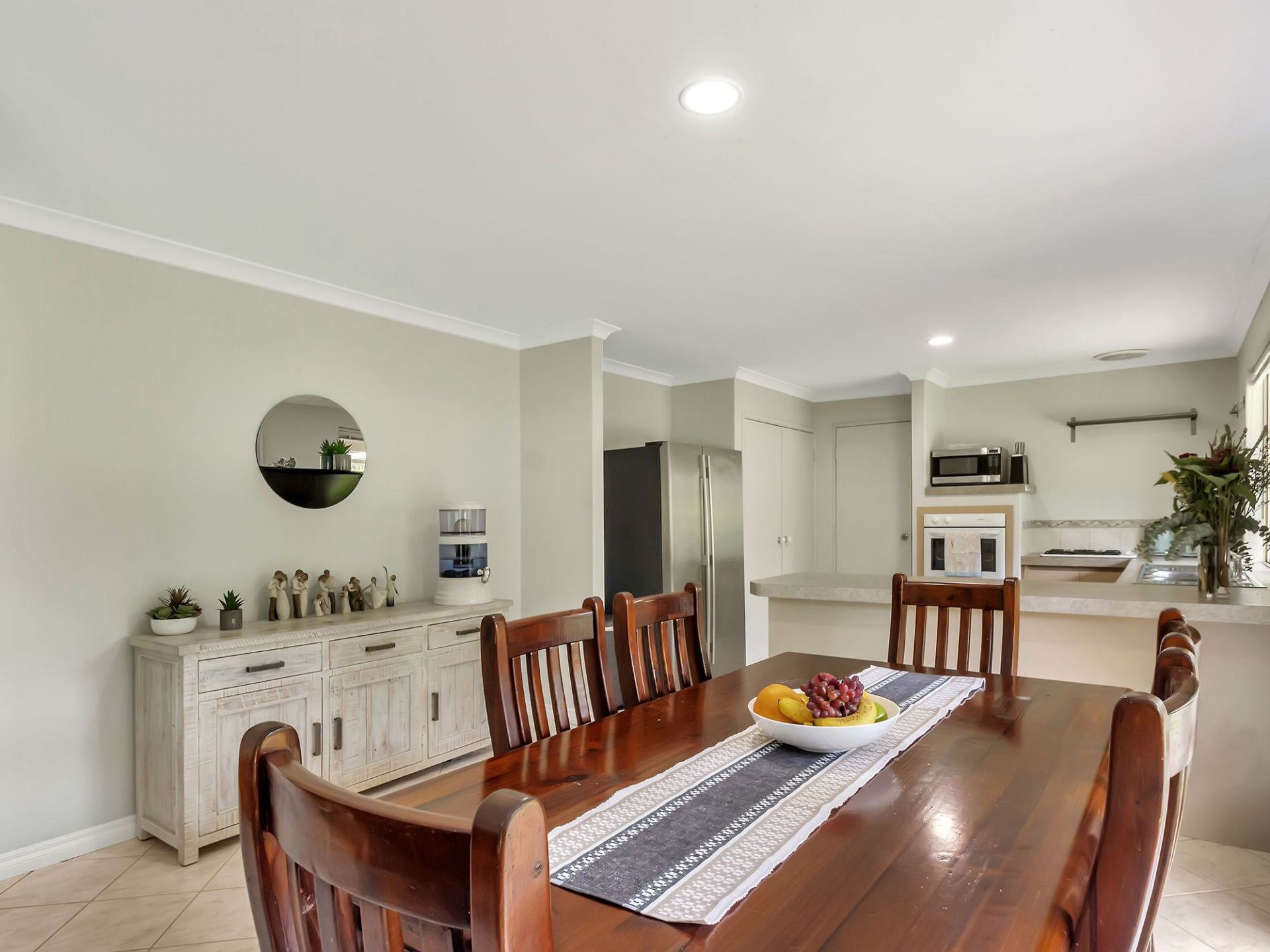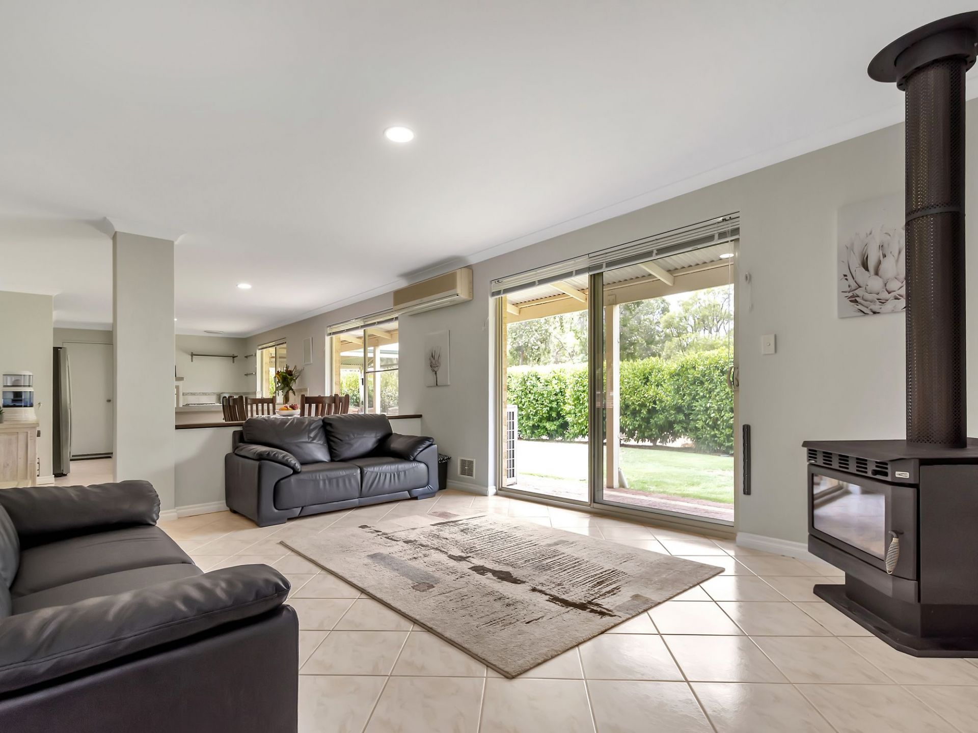Modern, spacious, tiled open plan living area