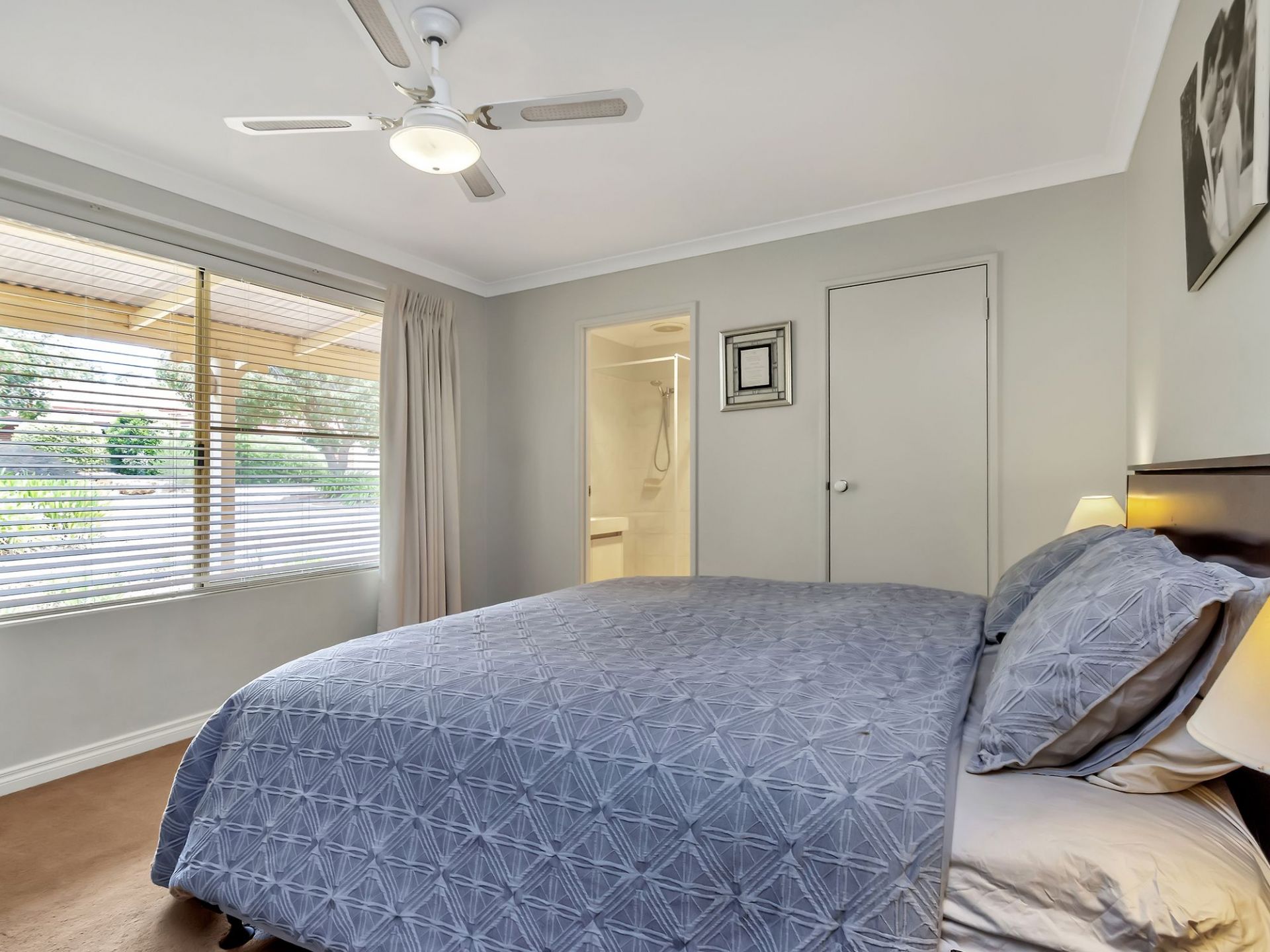White Venetian blinds throughout the home
