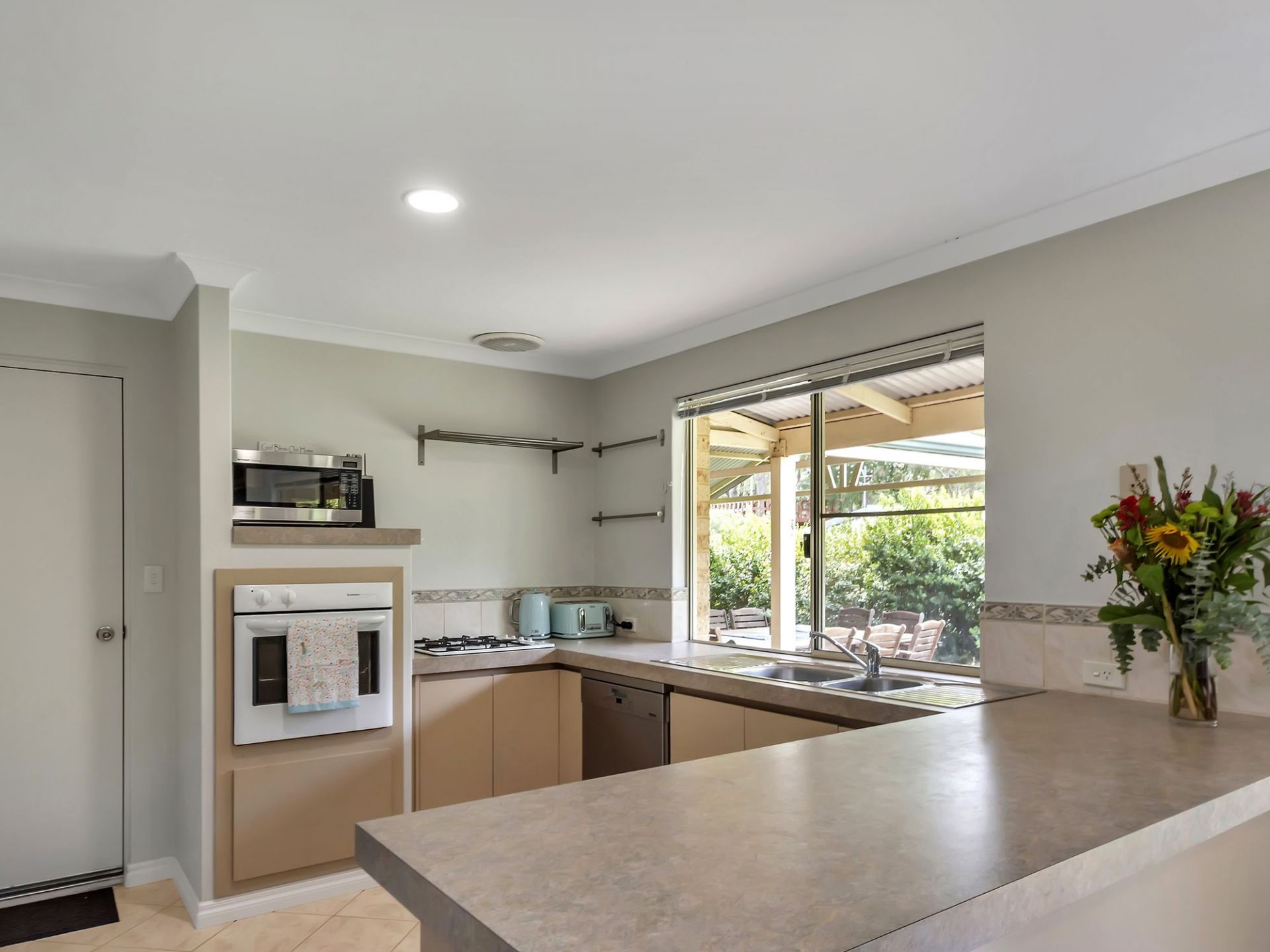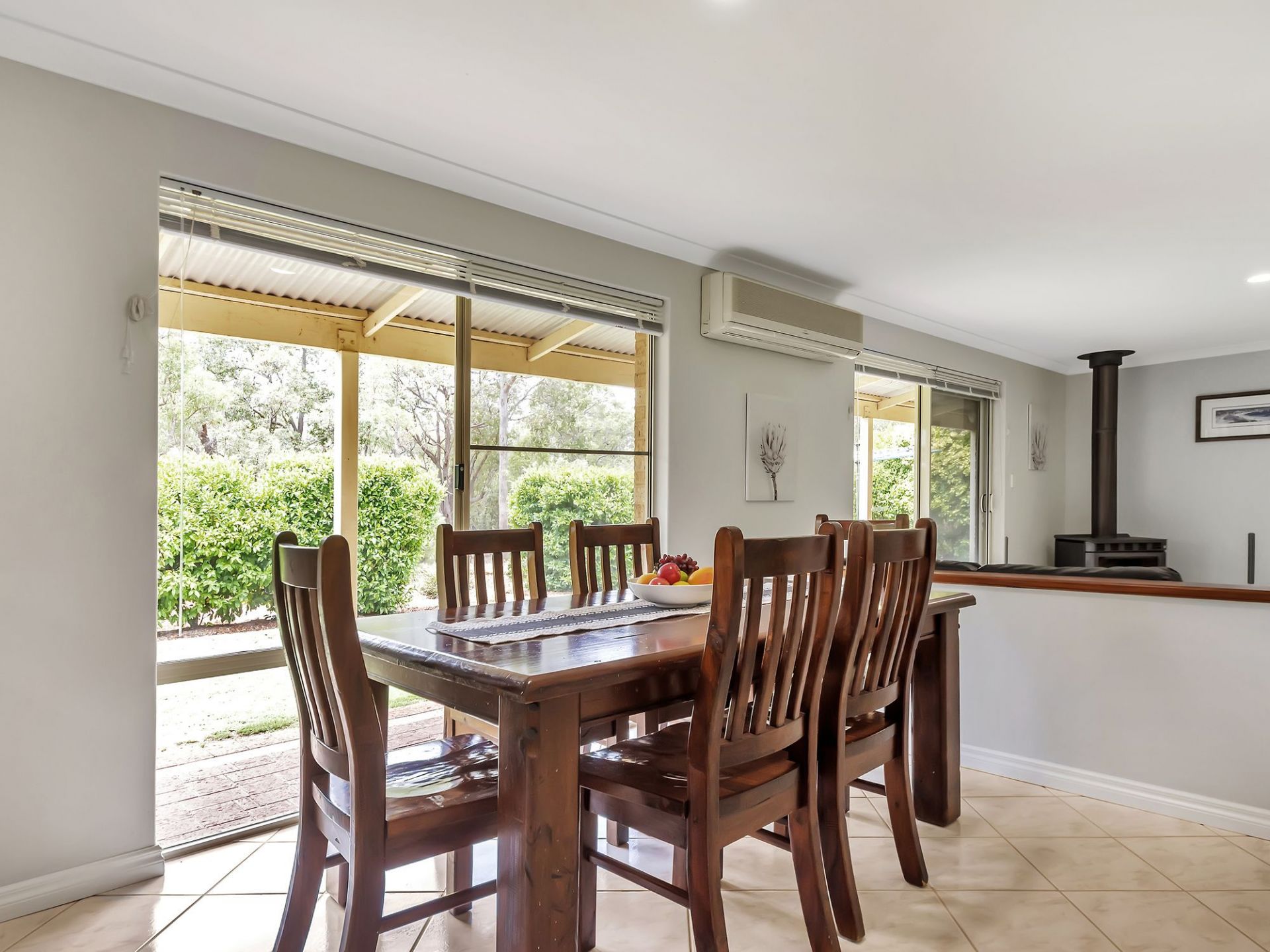 Emitting a wonderfully calm ambience, the living areas are open and capture the natural light streaming through the many windows throughout the home. A slow combustion wood fire in the main living room brings a gentle sense of coziness and warmth in winter months. Bedrooms are comfortably sized, perfect for children of all ages, with the fourth bedroom as an optional study. The master bedroom contains a walk in robe and tidy ensuite with separate toilet. A recently remodelled main bathroom porcelain tiled floor to ceiling with shower and bathtub make for a luxurious space for children or guests. At the rear of the home is the laundry, which contains a generous linen press and large trough with sliding door access to the back garden clothes line.