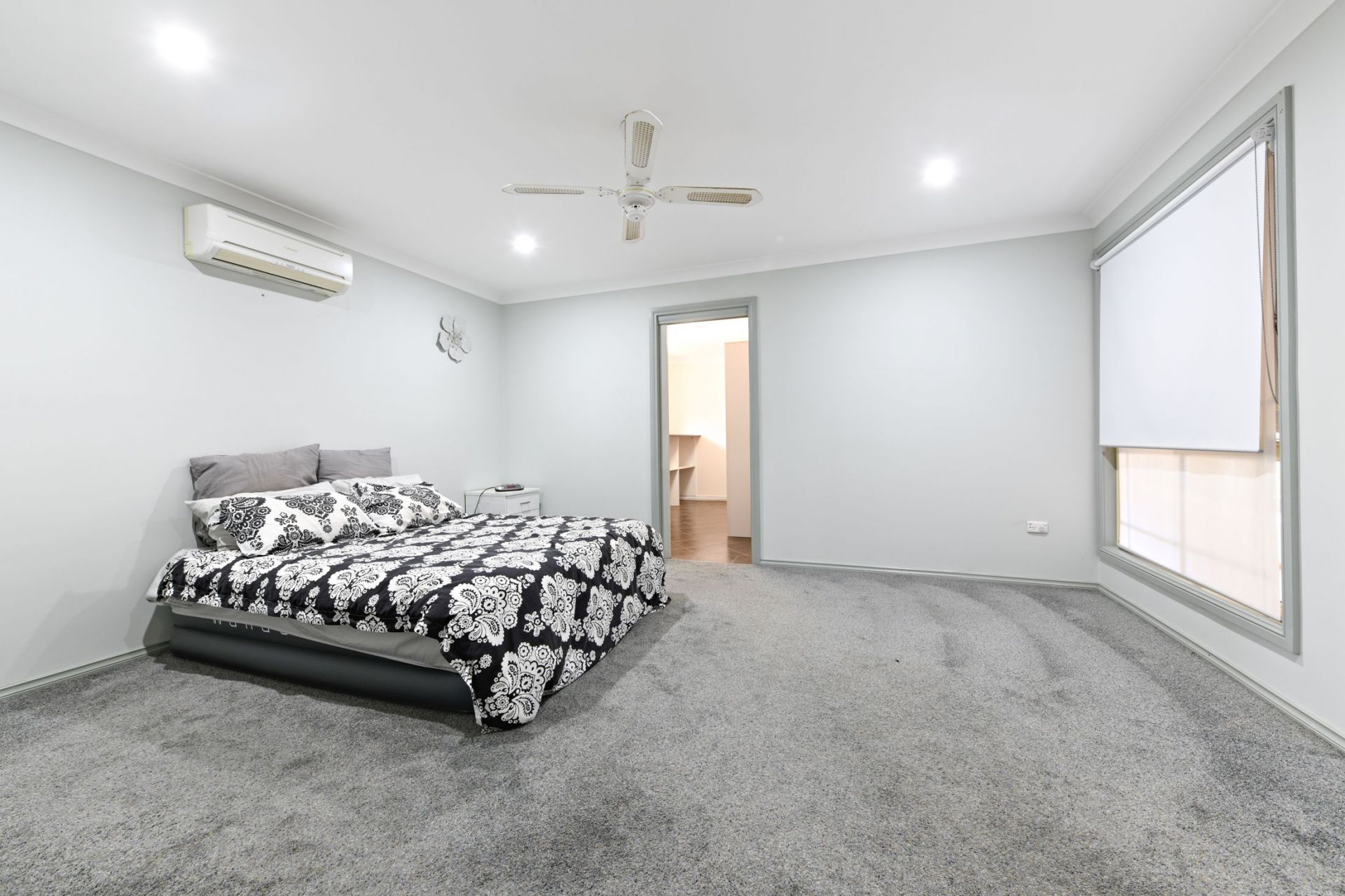 As you walk through the glass sliding doors off the family room you will note the green lawns, a stencil crete covered pergola area overlooking a great sized saltwater pool for all the family to enjoy, along with man cave with a red river wood bar top, TV points and TV this area could easily be changed back to a double car garage with electric doors.