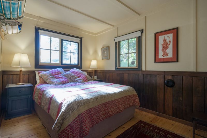The property also includes a 2nd residence, also a very popular rental, the single bedroom free-standing Stringer's Cottage. This cosy cottage has a galley kitchen, with gas oven, cooktop and fridge. There is a bathroom with shower, and seperate toilet. The cosy bedroom/sitting room has a wood fire and 2 fireside chairs. There is a covered porch overlooking Stringer's Creek, famous for its alluvial gold during the gold-rush heydays in Walhalla.