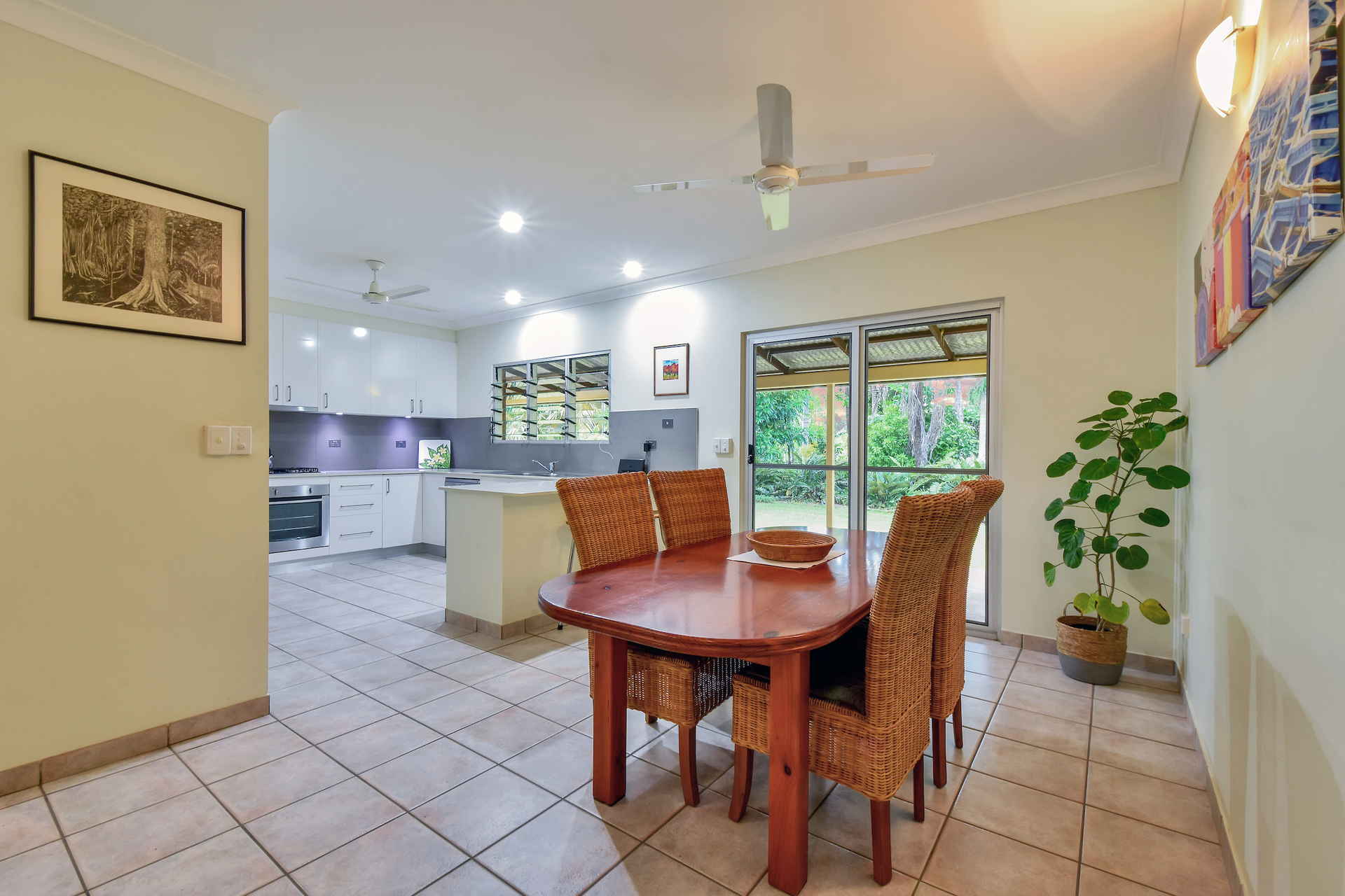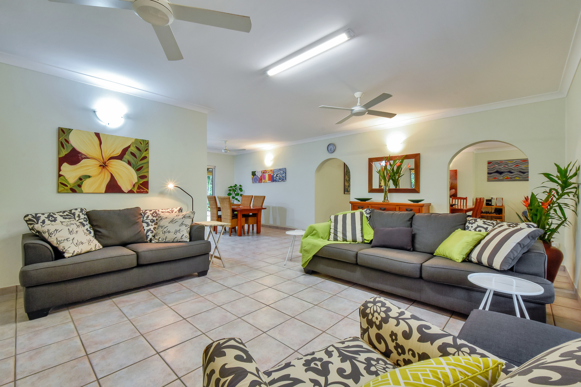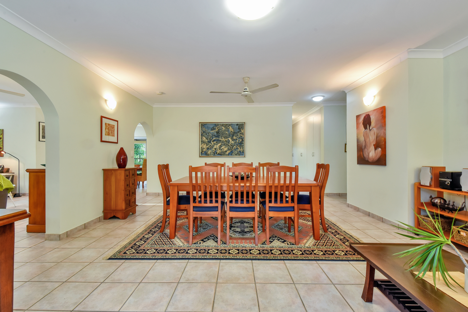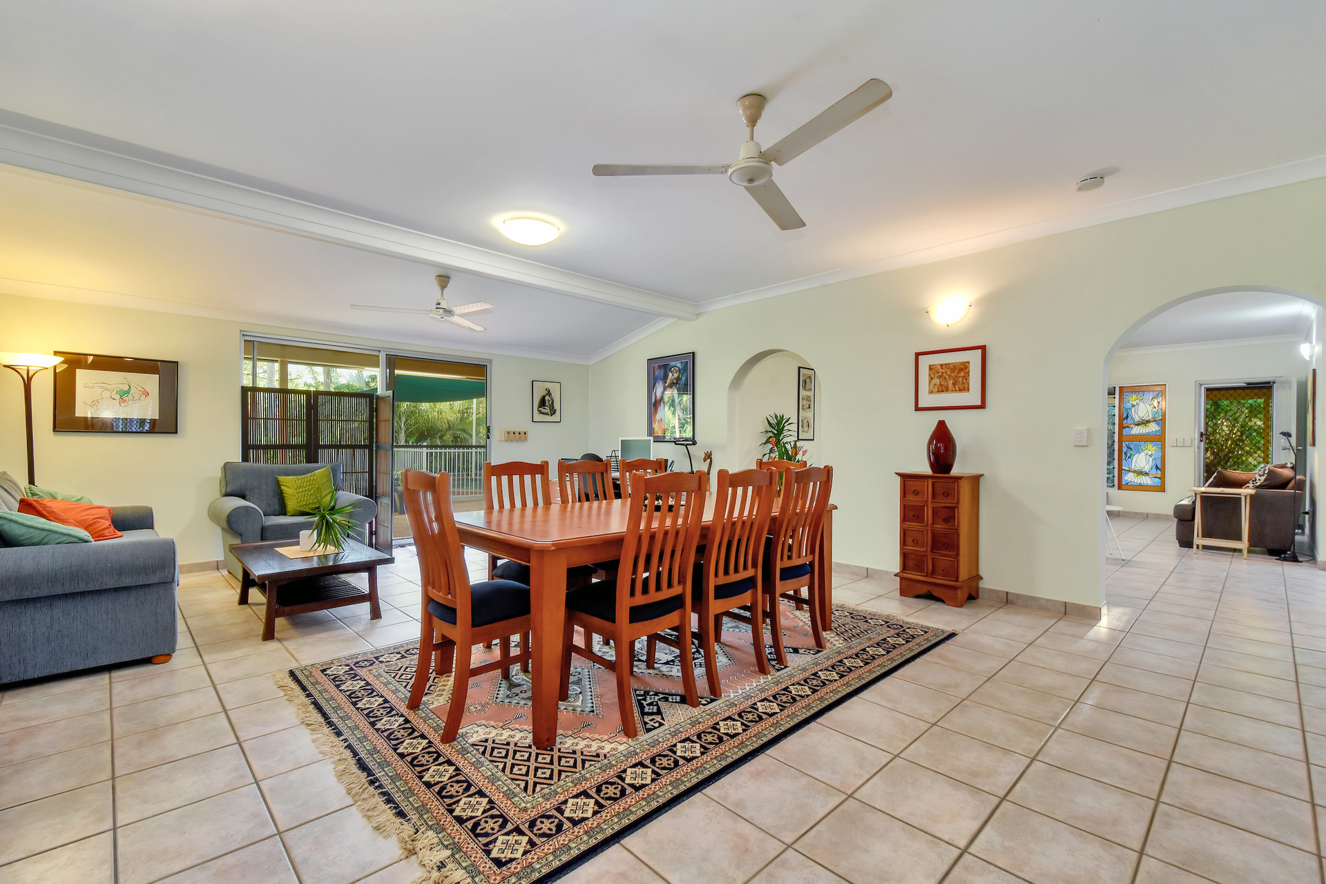The main house boasts open plan living, a functional and practical kitchen, an internal and external laundry and verandahs all round overlooking the pristine in ground pool surrounded by leafy green palms.