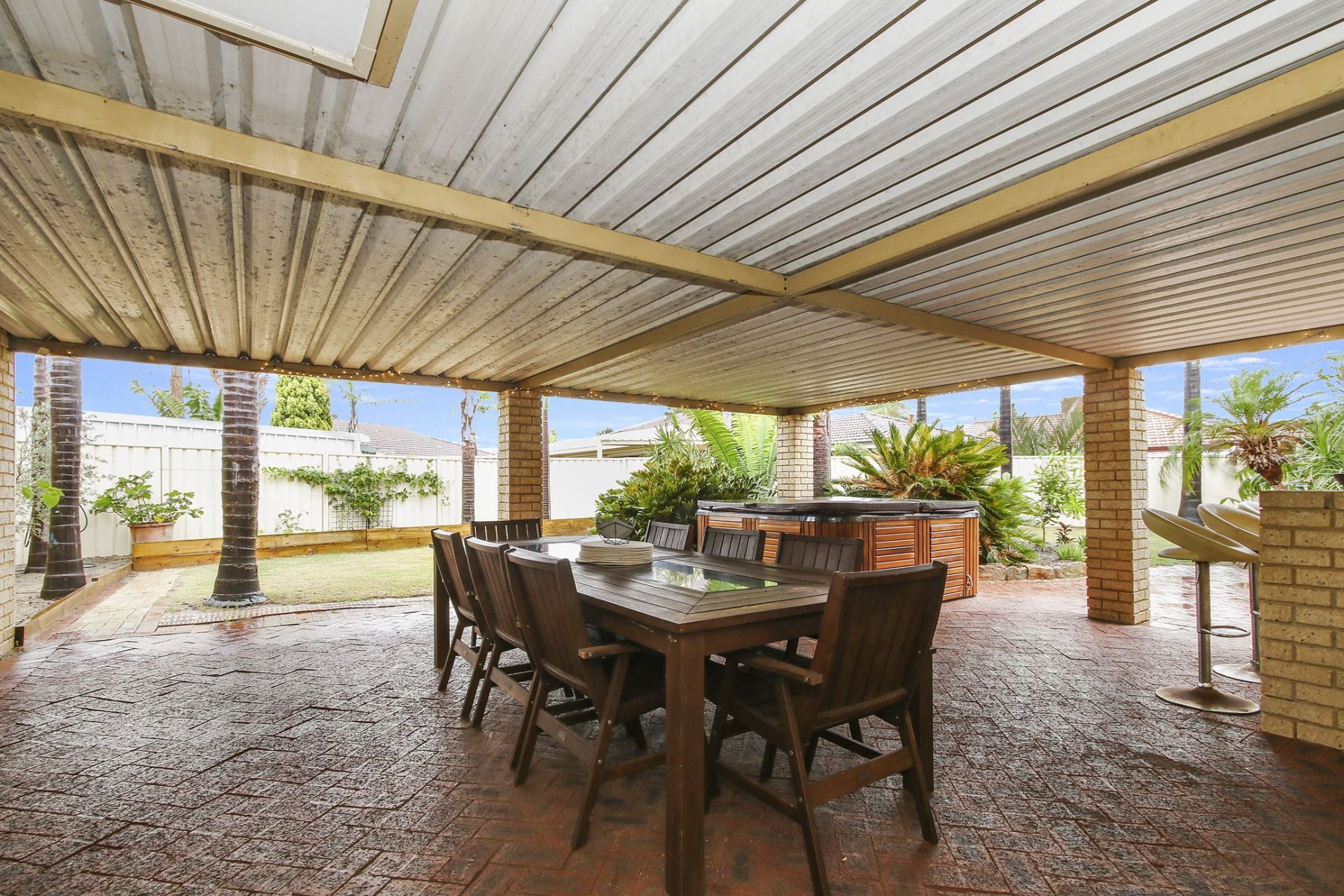 - Large patio area with built in bar