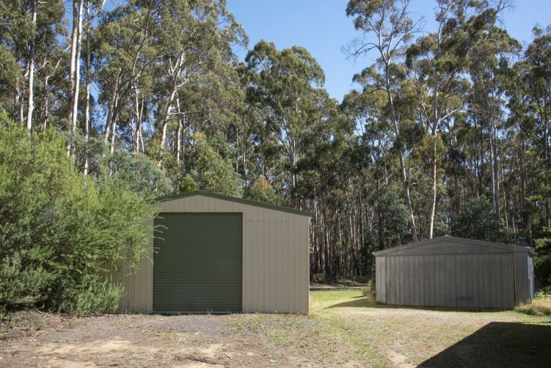 As well as a 2 car garage with concrete floor & power, woodshed, garden shed & chook shed with run. Total 9,000 gal tank water. There are some fruit trees & a veggie patch.