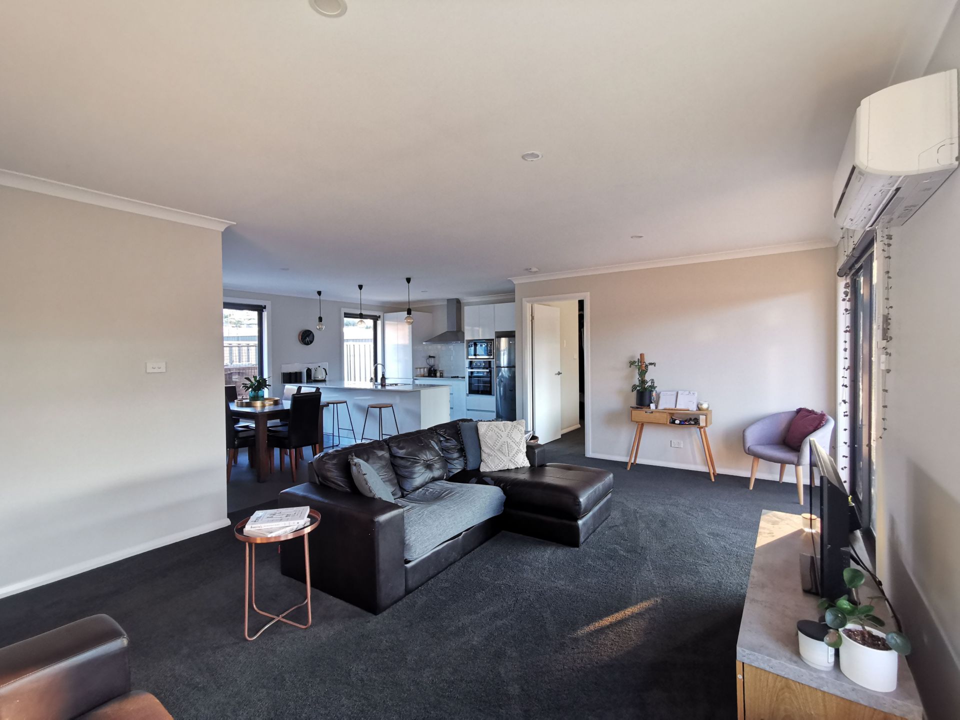 - Open plan living, dining and kitchen