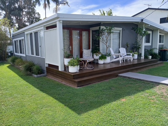 Beautiful timber bifold doors from living area to front deck