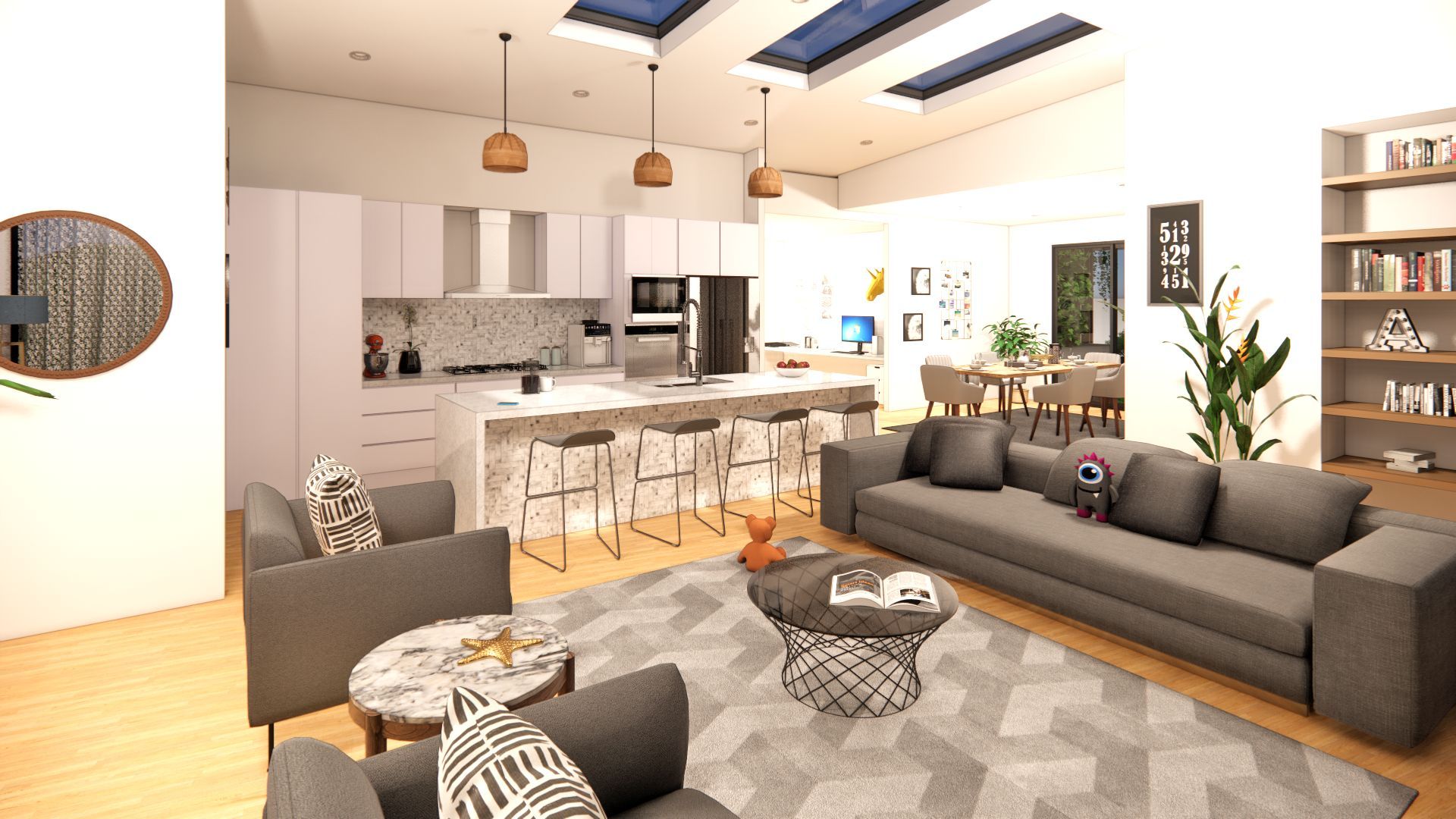 - Large spans of glass and skylights for beautiful natural light throughout the house