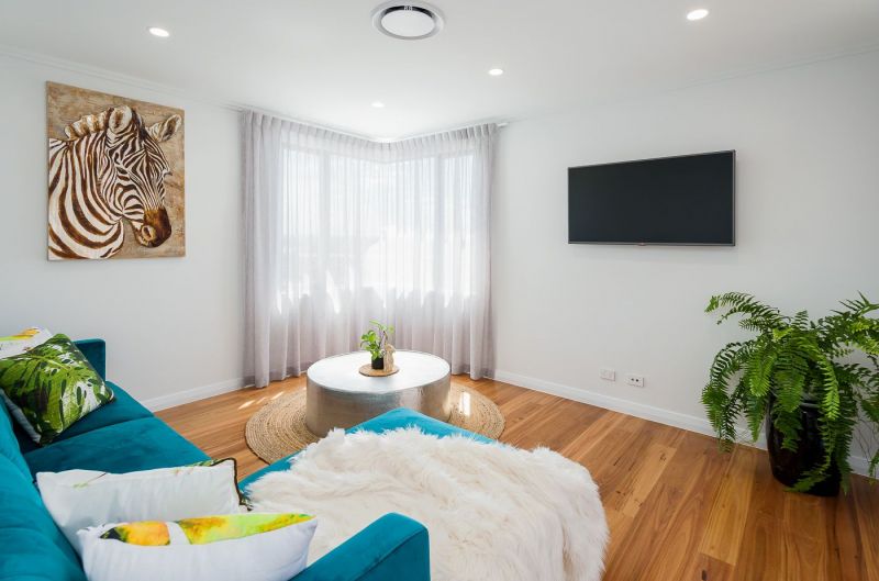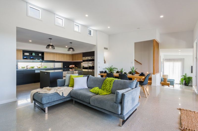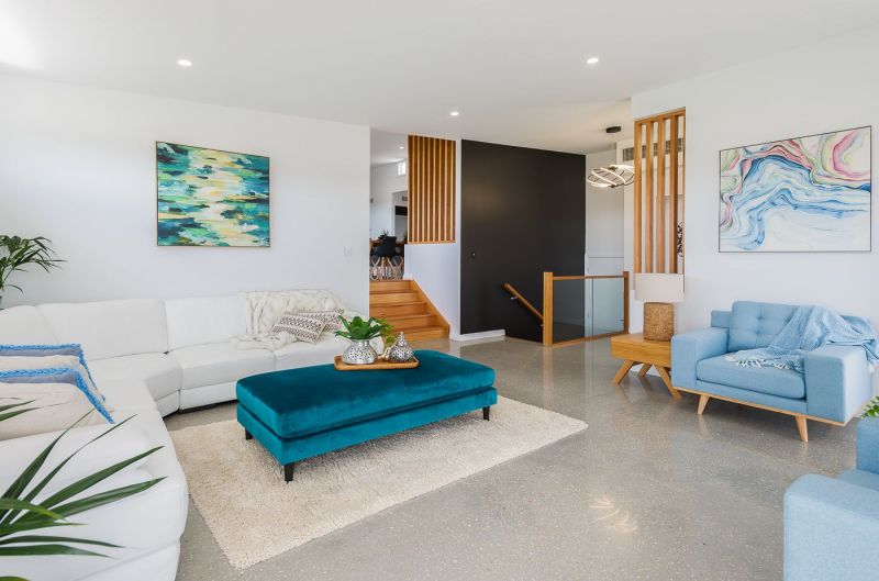 The home boasts Polished concrete floors with Blackbutt timber flooring, stairs and screens that are an impressive feature throughout this meticulously finished home.