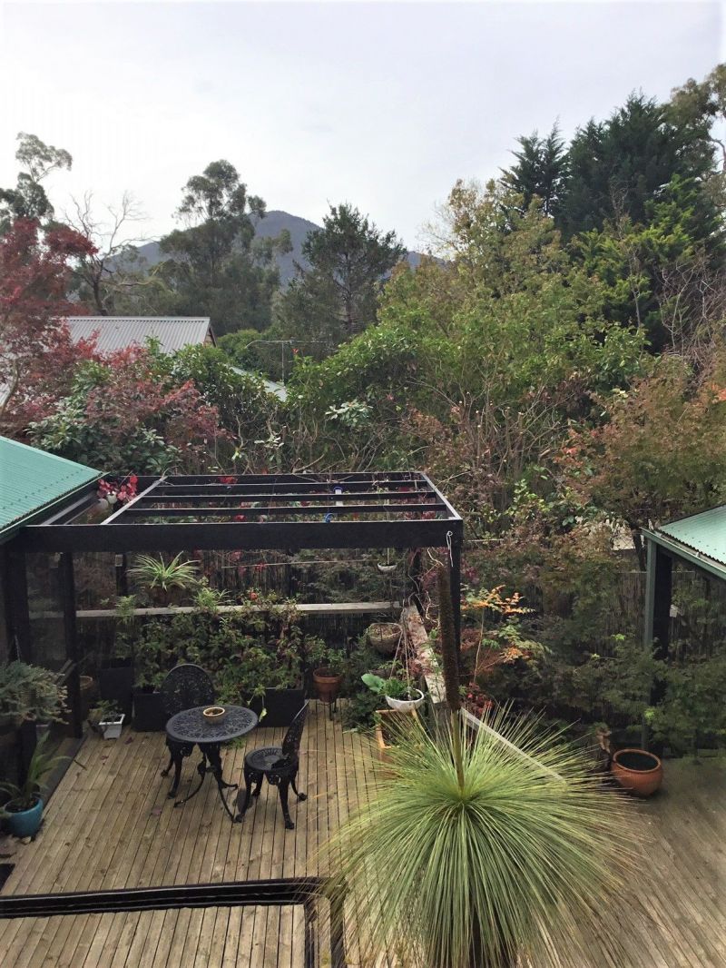 Set in a picturesque garden, Cross View features a single storey residence which enjoys a northerly aspect with views of Mt Macedon.