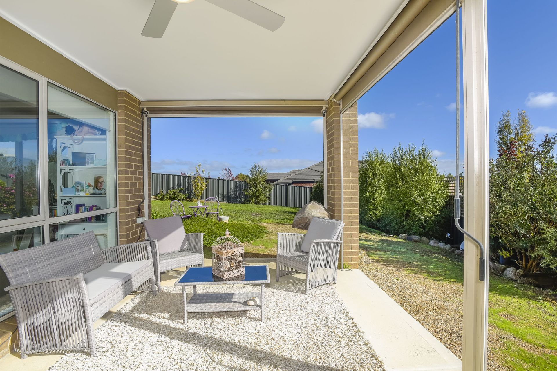 The lounge area leads out to the alfresco that has quality blinds to fully enclose it, along with a large ceiling fan making it a space that can be used nearly all year round.