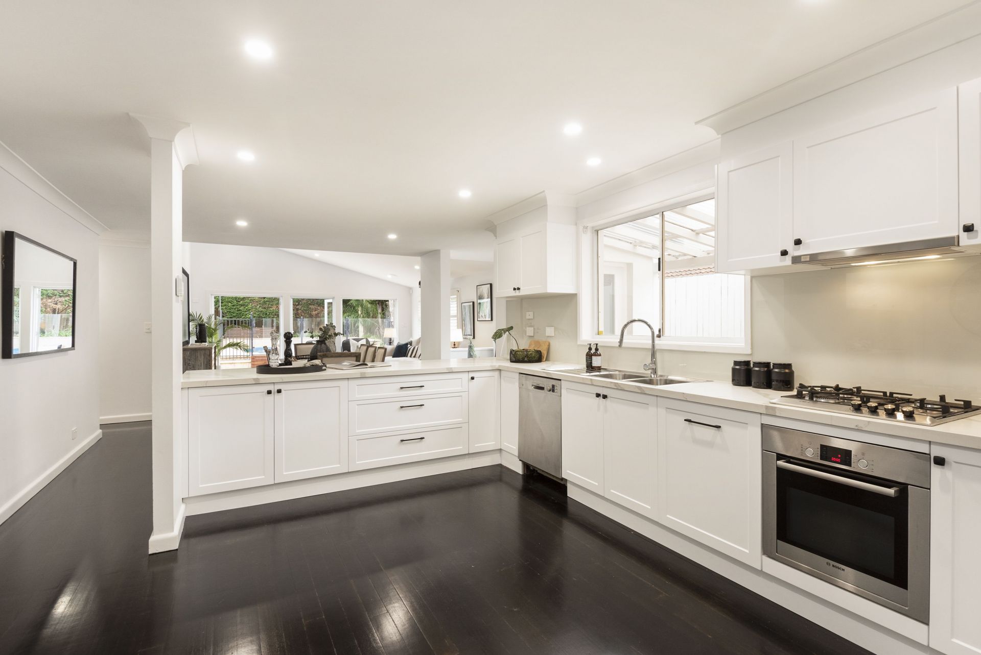 Two separate living areas. Open plan spacious kitchen, dining area and stunning vaulted living area. Generous master with decadent dressing room and ensuite attached.