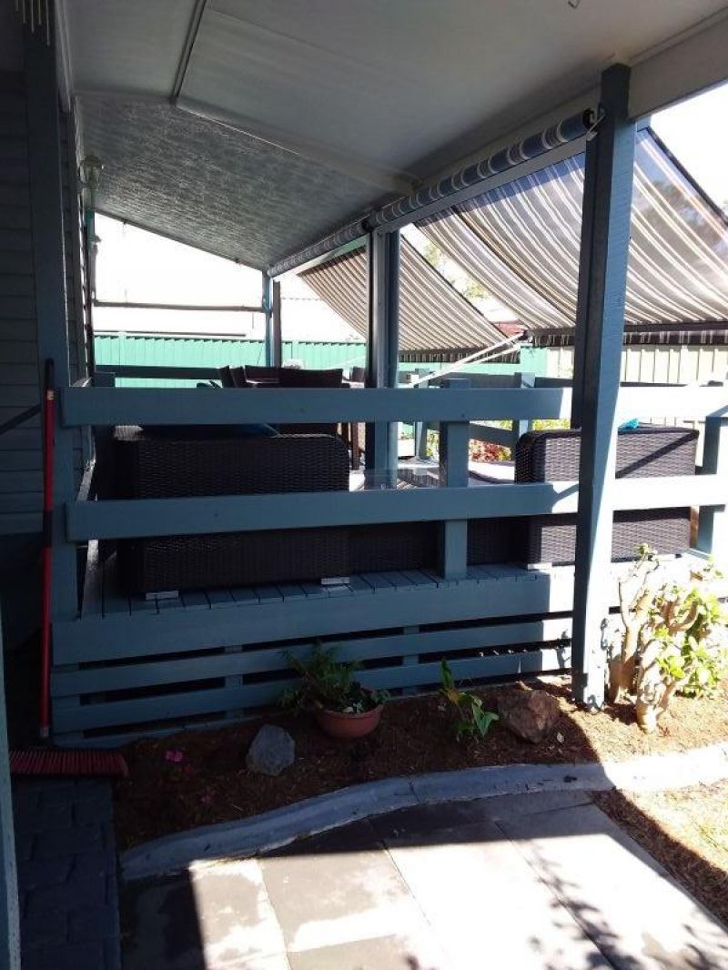 Large deck leading out from lounge with both Sun blinds and pull down Shade blinds overlooking the low maintenance garden. Fully fenced colourbond fencing and gate for privacy. Large colourbond shed with power and a separate smaller garden shed. Offleash park for dogs at rear of Village. The Village has a new Club House with library, kitchen, bar, dance floor and toilets with a separate bbq area. Also there is a swimming pool and bowling green.