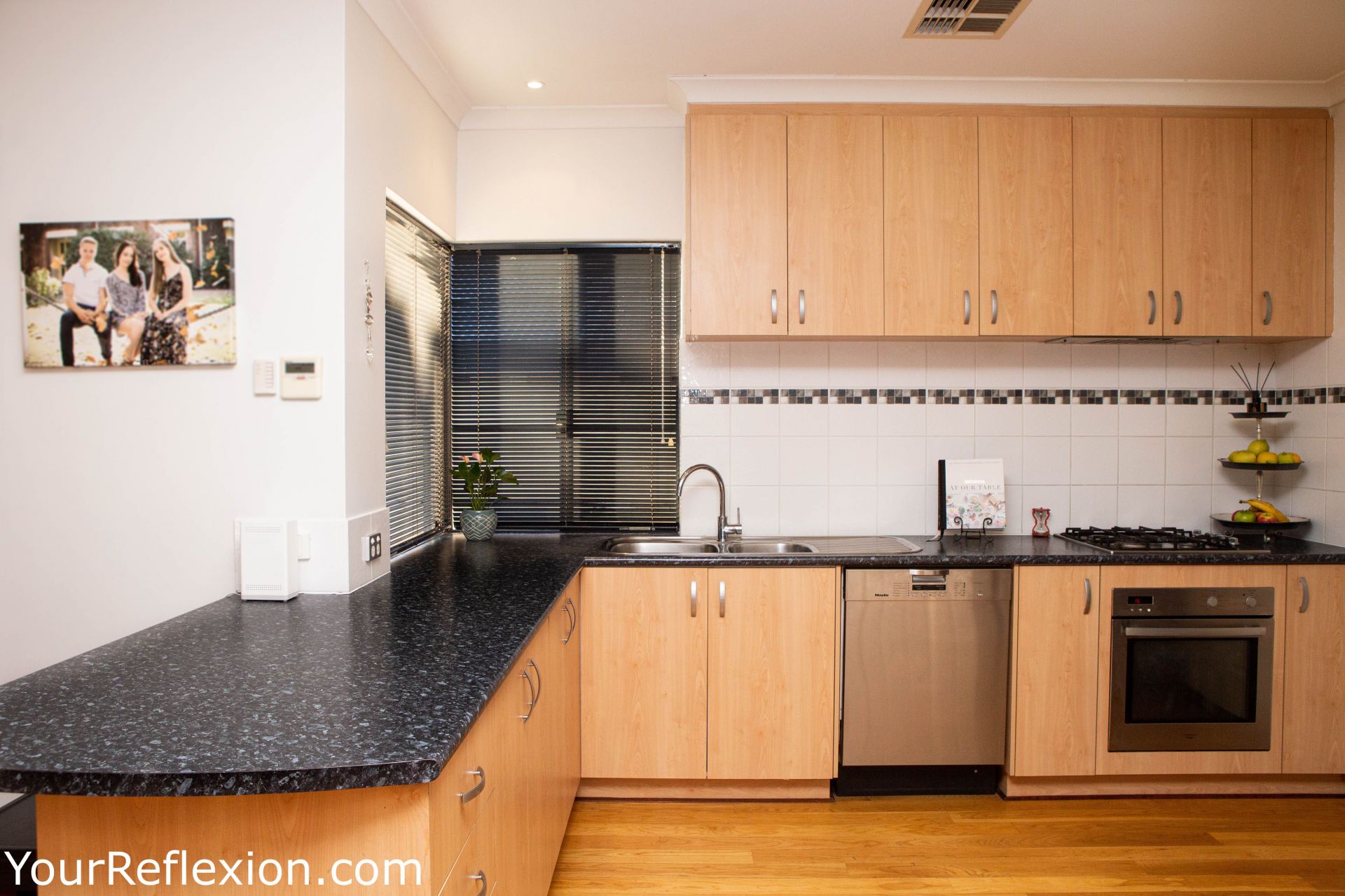 *Gourmet kitchen with loads of bench space, gas bench top stove, a huge corner pantry, overhead cupboards, utilities cupboard with roller door for the coffee machine and enough space for a large double fridge with plumbing in place for filtered water, dishwasher and a shopper's entry to a full-sized double garage. Triple locked security doors, front and back.