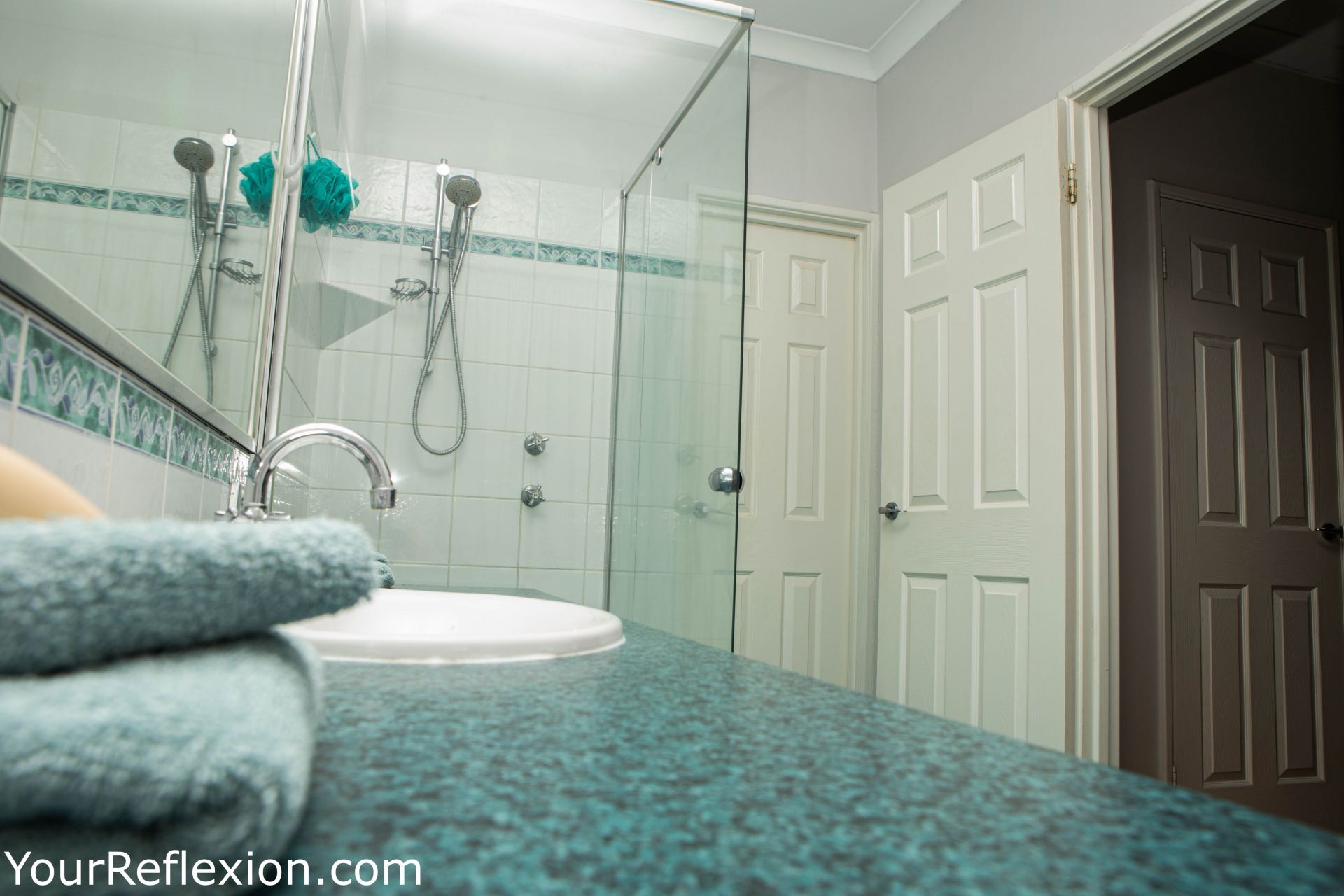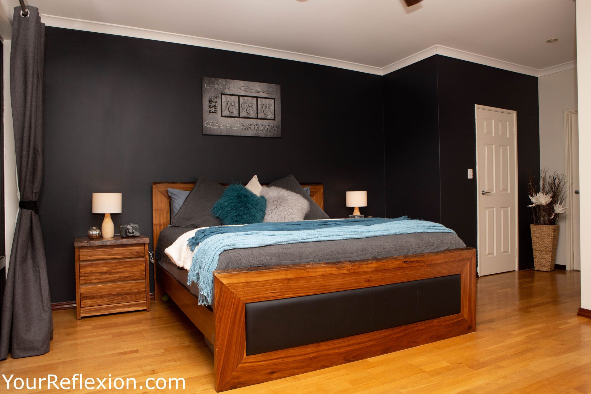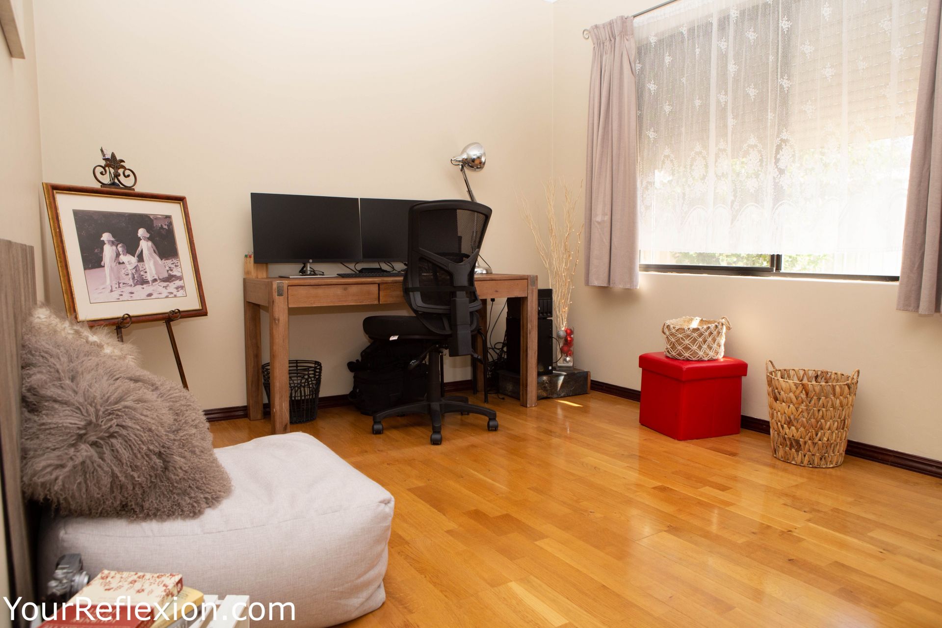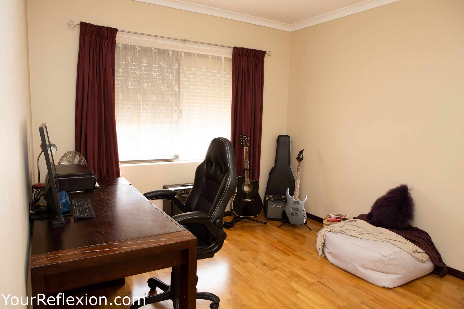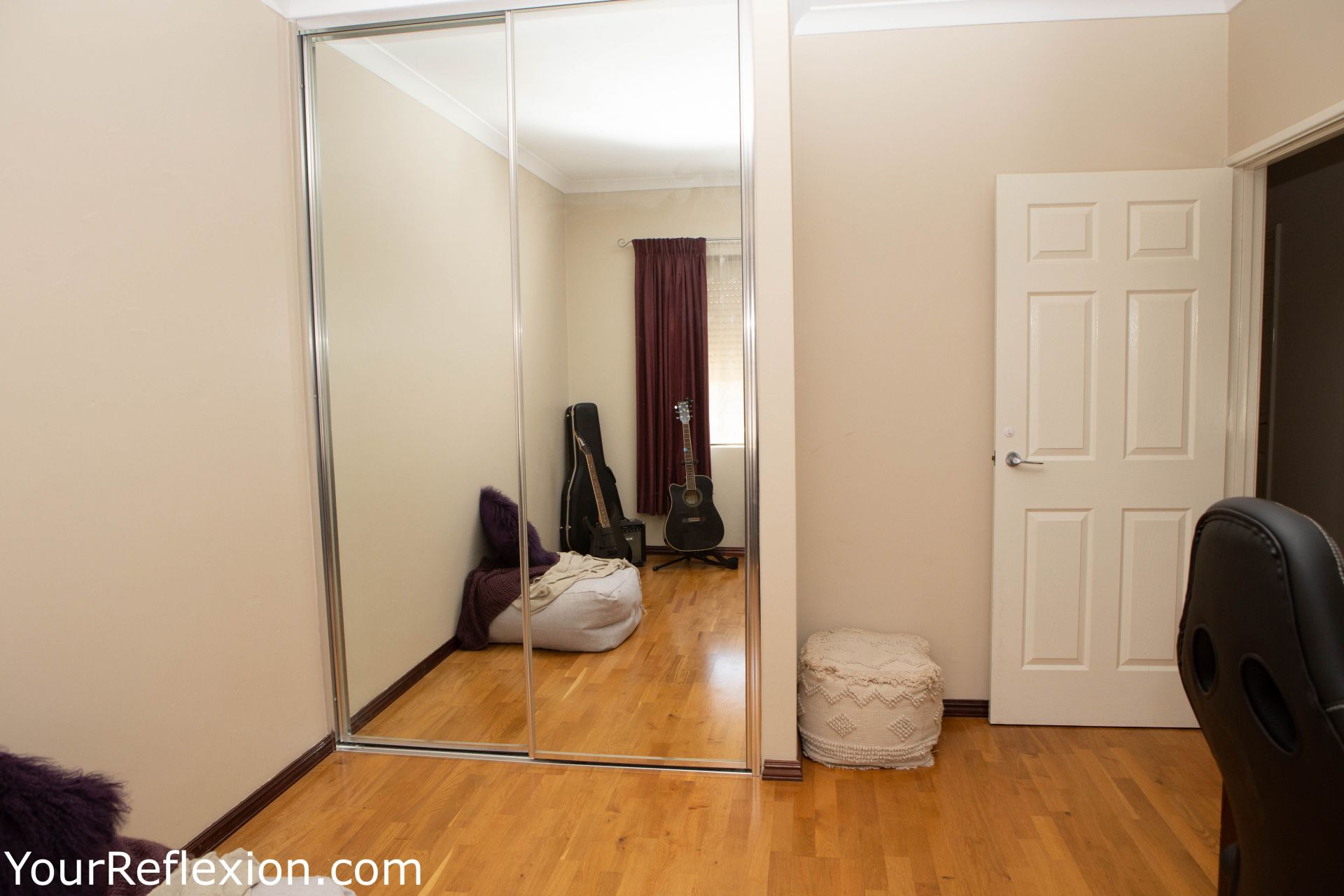 *Front Lounge turned theatre room freshly painted modern colours, to bring your movies to life. Double white French doors separating the lounge to the living area.