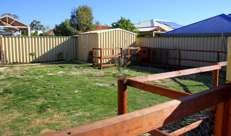 - Dog-proof chicken pen, fully fenced from backyard