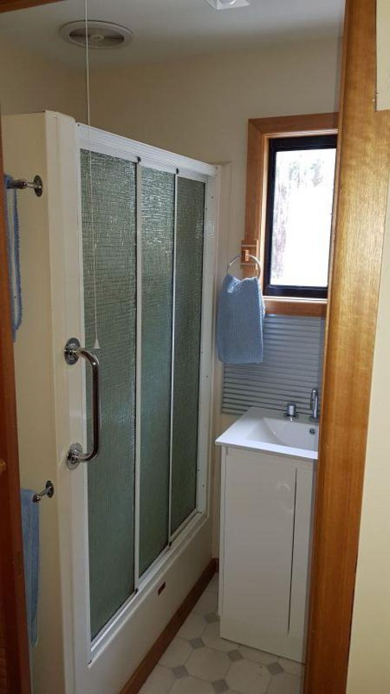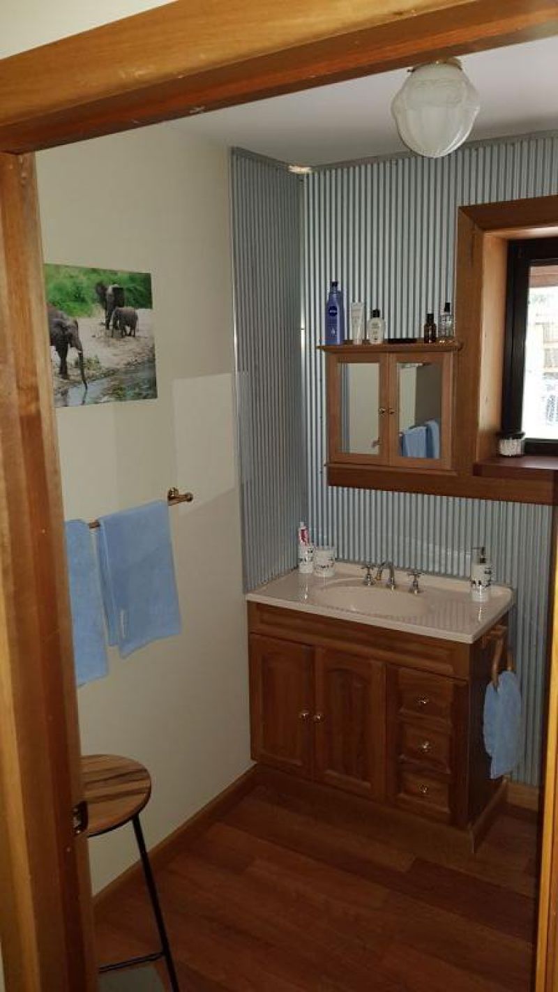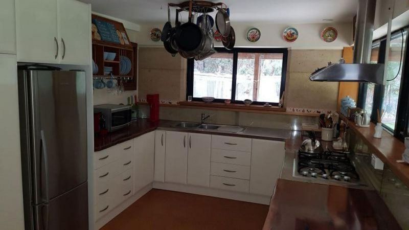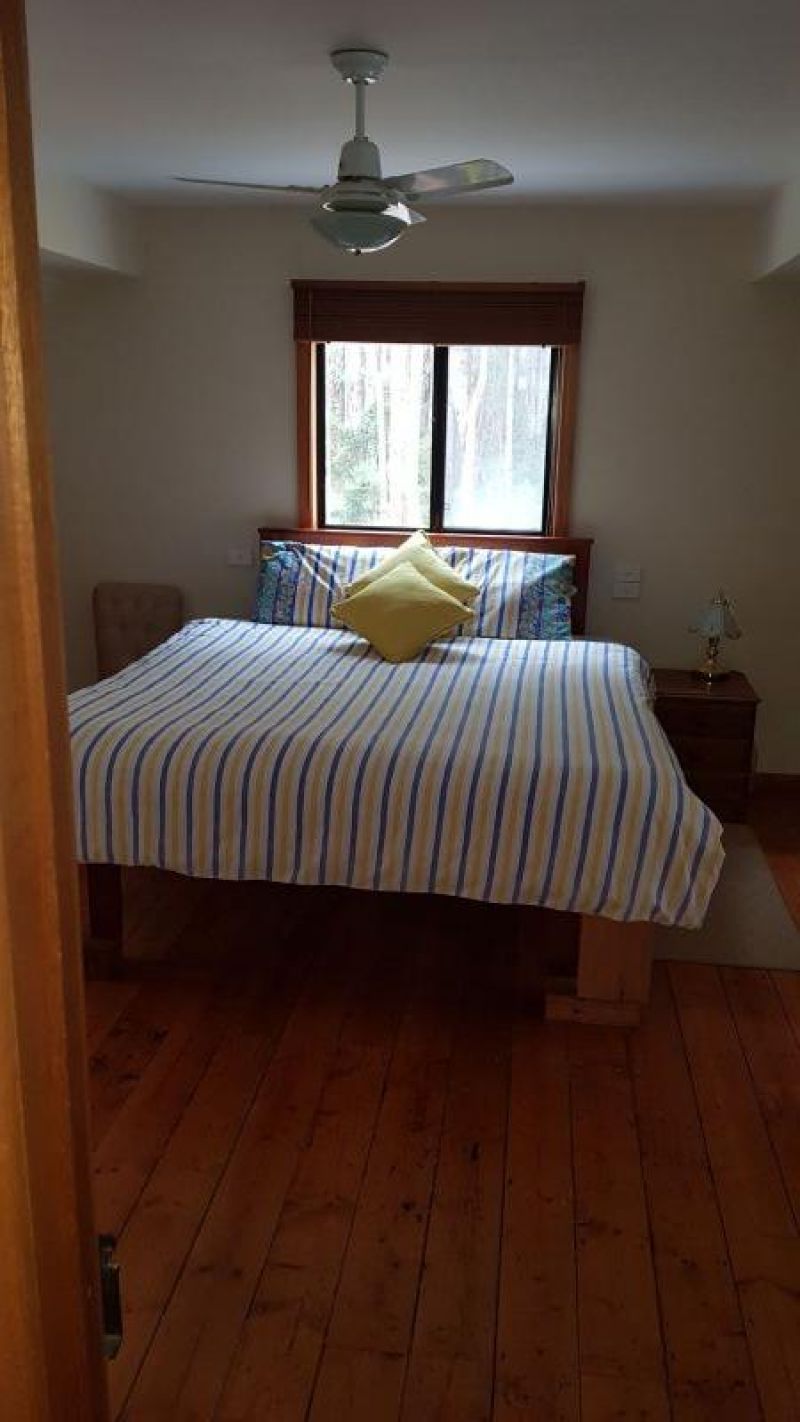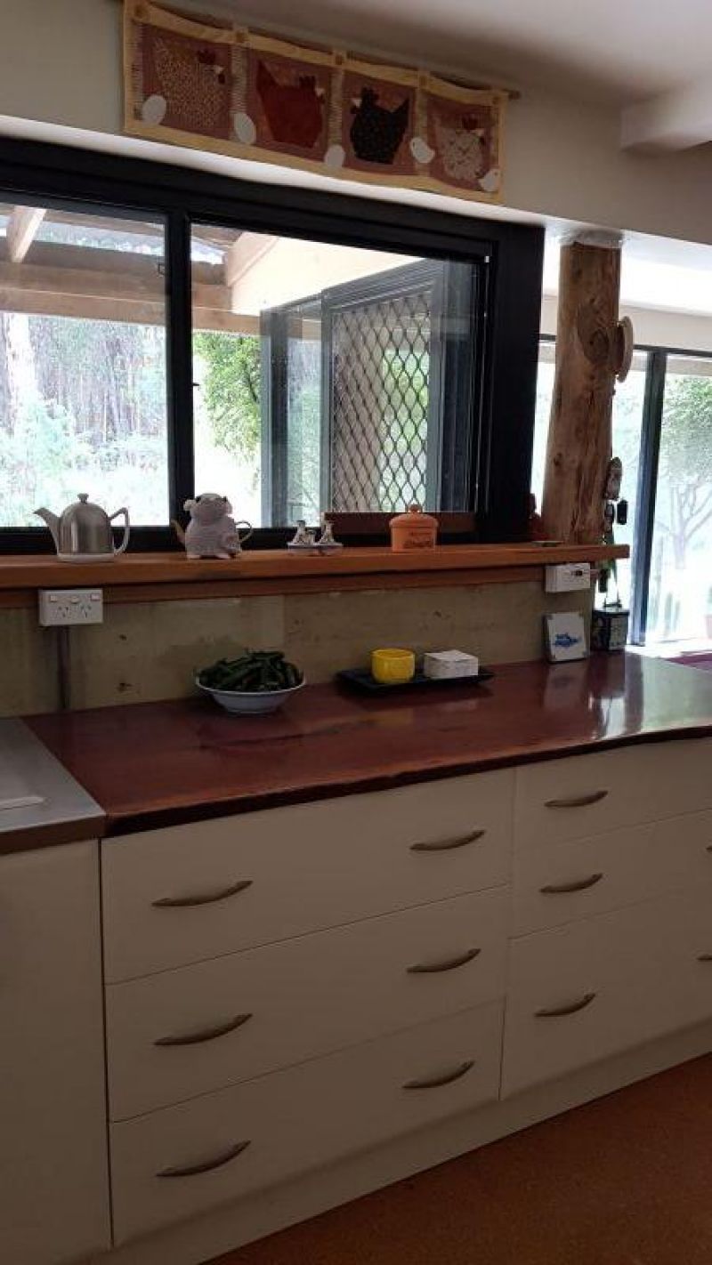 The house comprises of open plan living on the ground floor, with views through double glazed windows of the abundant native bird and wildlife. The light filled spacious kitchen has red gum timber and stainless steel bench tops and thermo coated cupboard and drawer exteriors providing a large amount of storage. There is also a full height double door pantry.