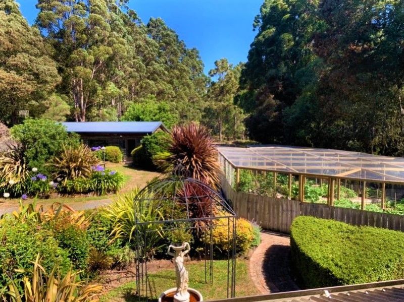 The main residence comprises four bedrooms, solid timber throughout, Upstairs, main bedroom, two bedrooms, large bathroom, retreat area with stunning views to valley. Down the timber staircase to the spacious Country Kitchen, heaps of cupboards and benchtops, sunken dining with access to patio. Bathroom and bedroom, heaps of cupboard space. Sunken lounge with beautiful library, separate glass sunroom/studio with garden views. Perfectly designed, with a north facing aspect, taking advantage of sunlight, views and privacy within a rural setting. Your own rare and unique tropical lush rainforest, running creek meandering through the property with platypus, blackfish and trout. Cleared pasture to run cattle or horses.