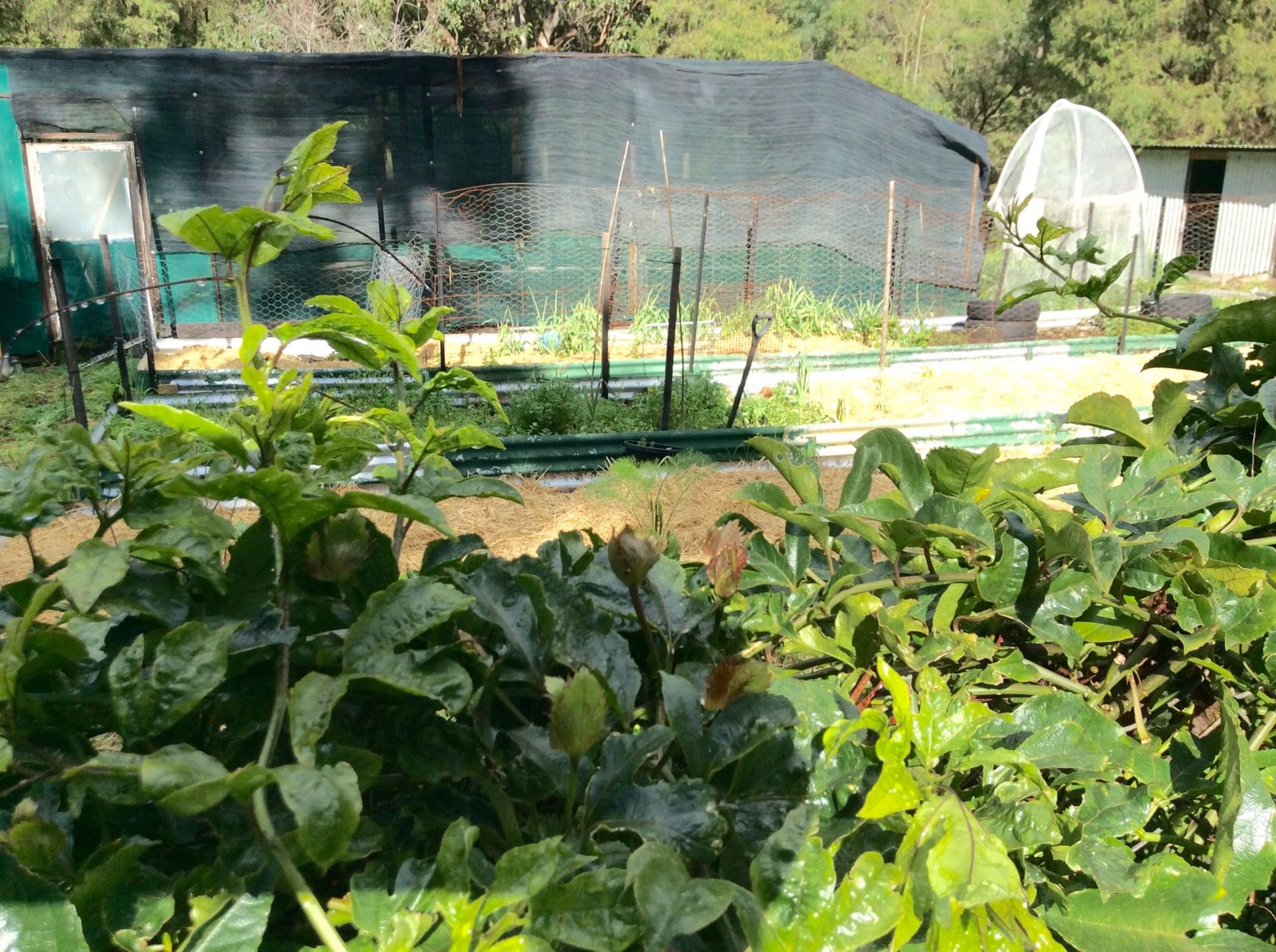 A variety of fruit trees, 3 large raised Vegetable Gardens, Shade house, sheds