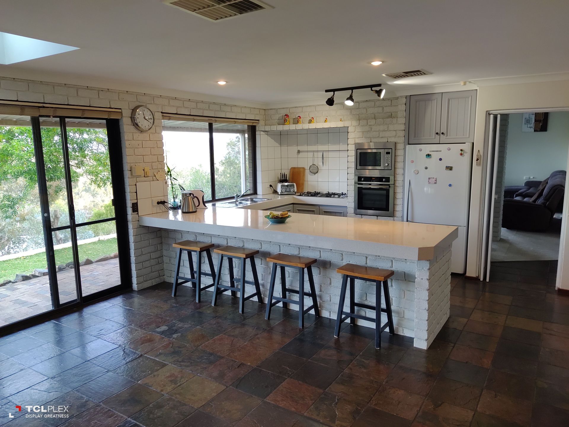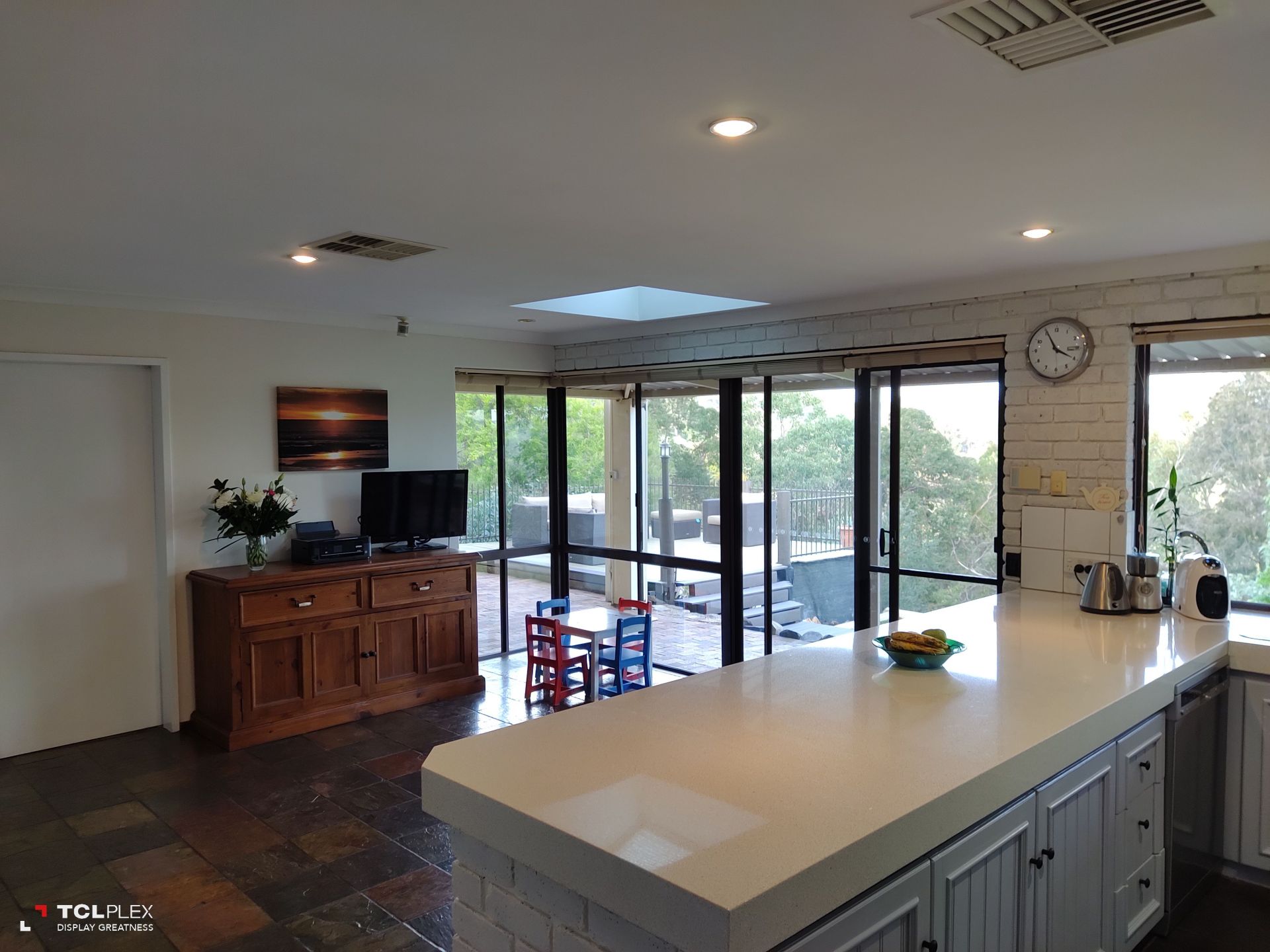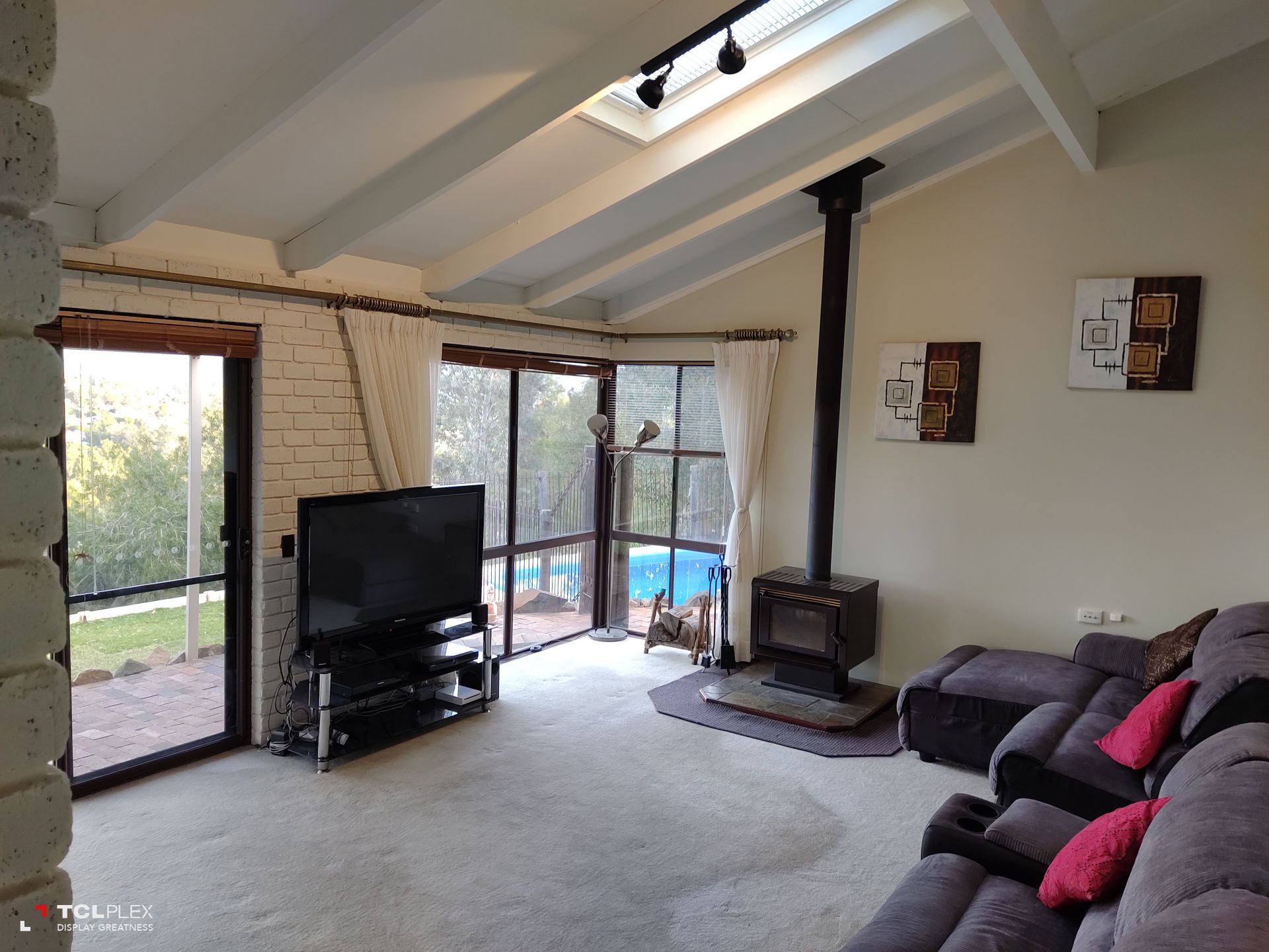 • Floor to ceiling windows/external door looking out over the lawn, pool and valley views. Under stairs cupboard for storage