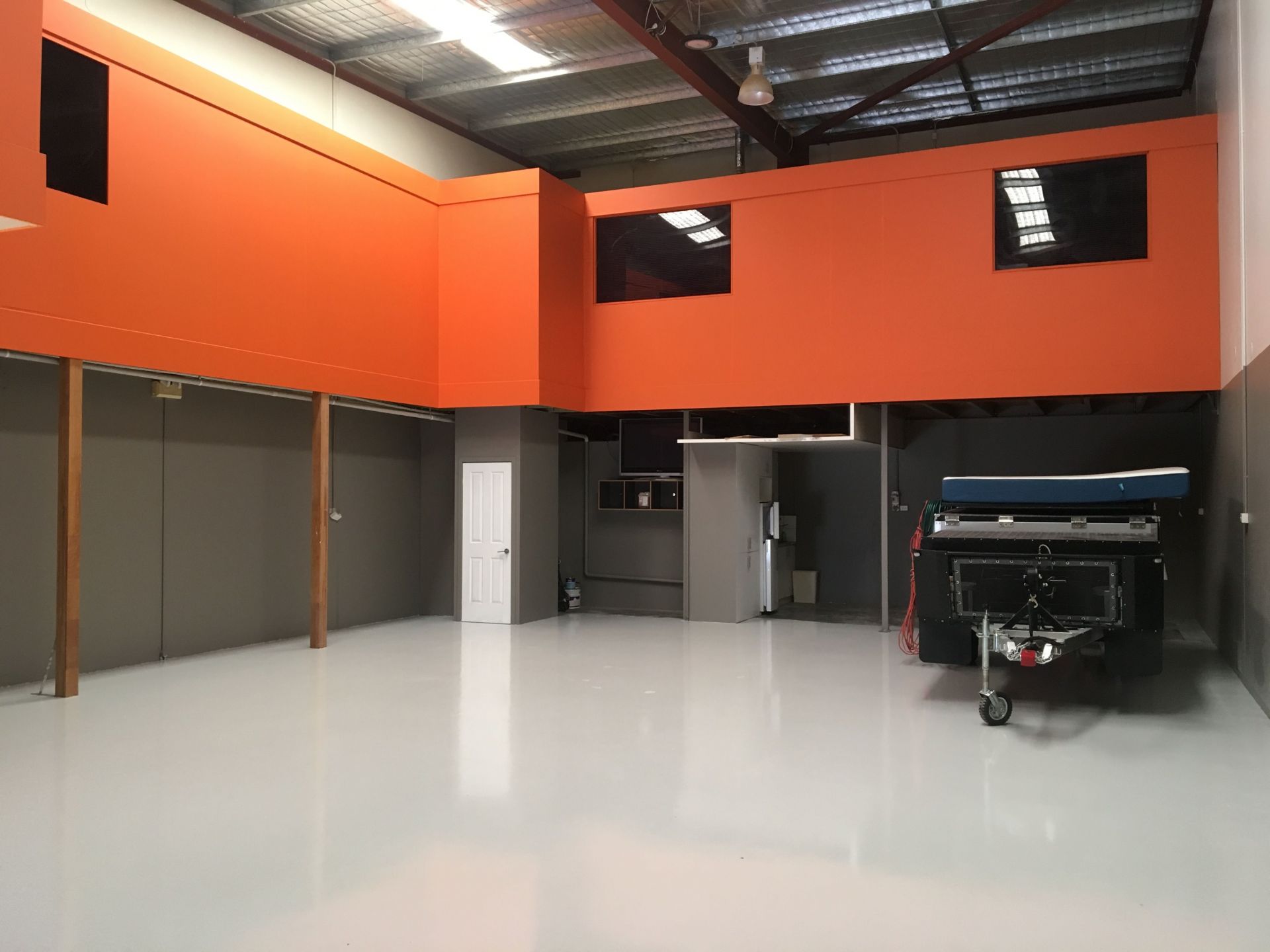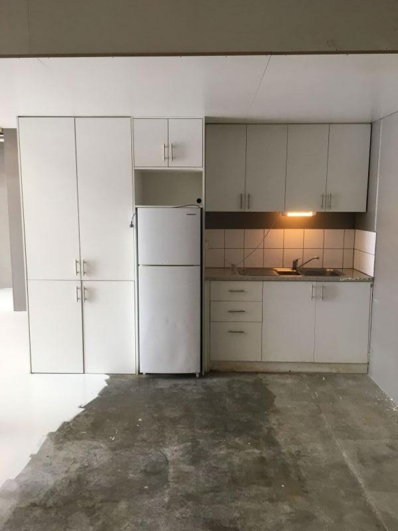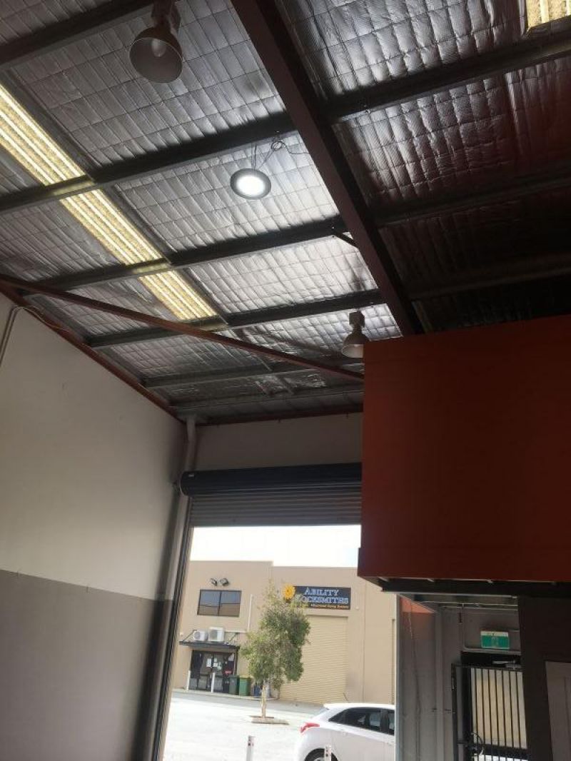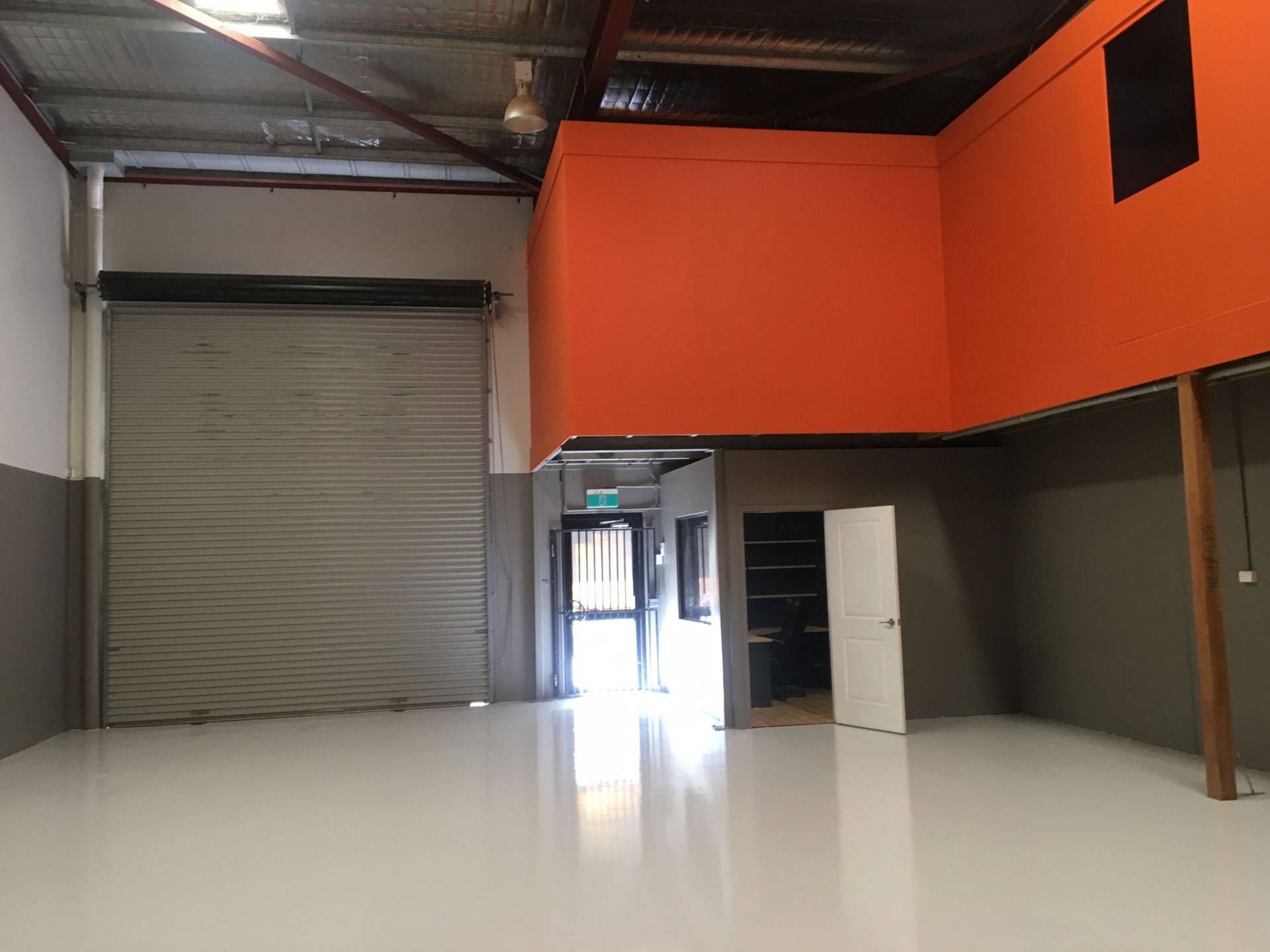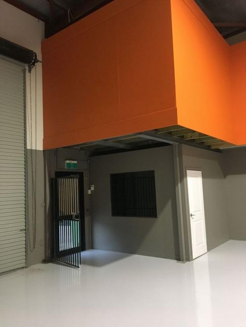 the 165m2 strata office/warehouse plus (approx) 55m2 of previous owner-built mezzanine/living area. This comprises 2 bedrooms and 2 bathrooms, kitchen and laundry. The mezzanine and other built in improvements are NOT council approved. A security system, internal locks and security gate, external bollards and LED warehouse lighting.