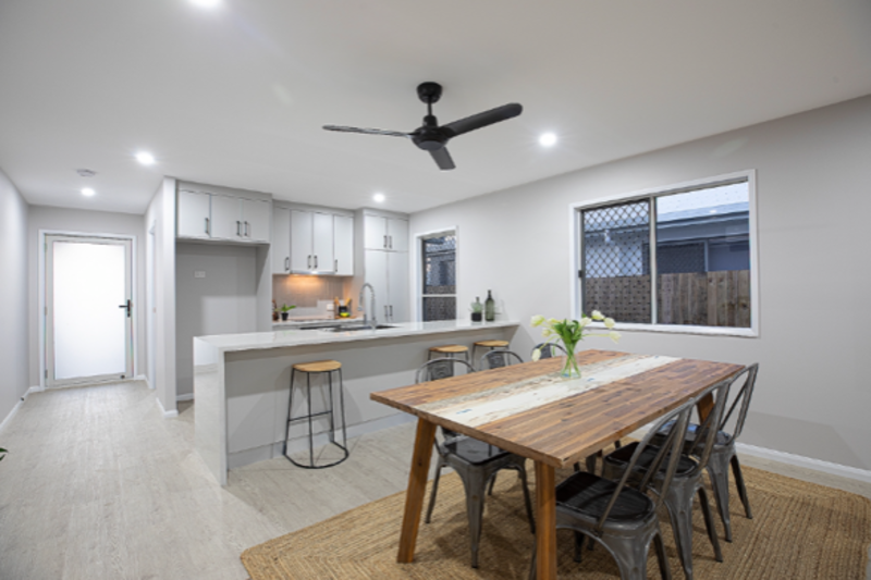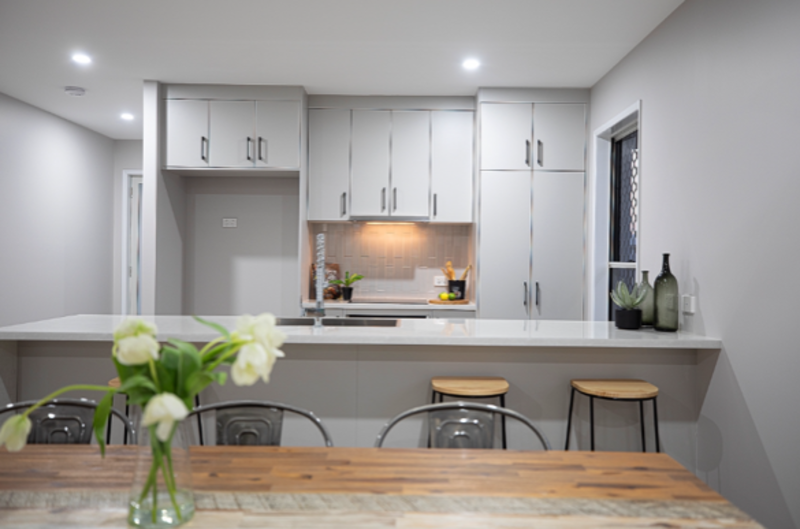 The kitchen is fully equipped with dishwasher and quality fittings.