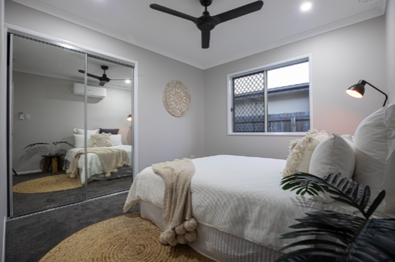 3 large bedrooms all with built in robes, mirrored doors, carpets and air conditioning.