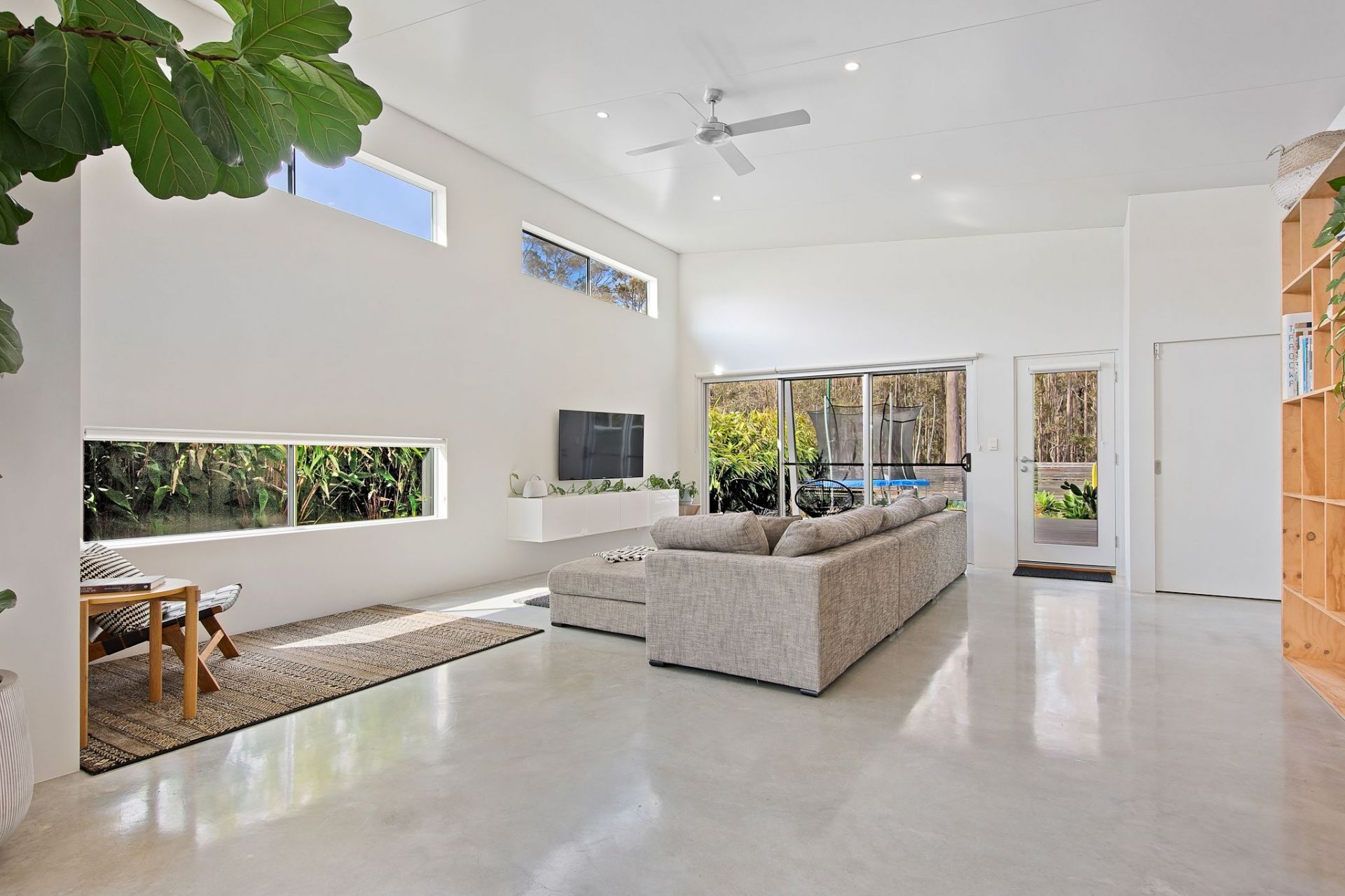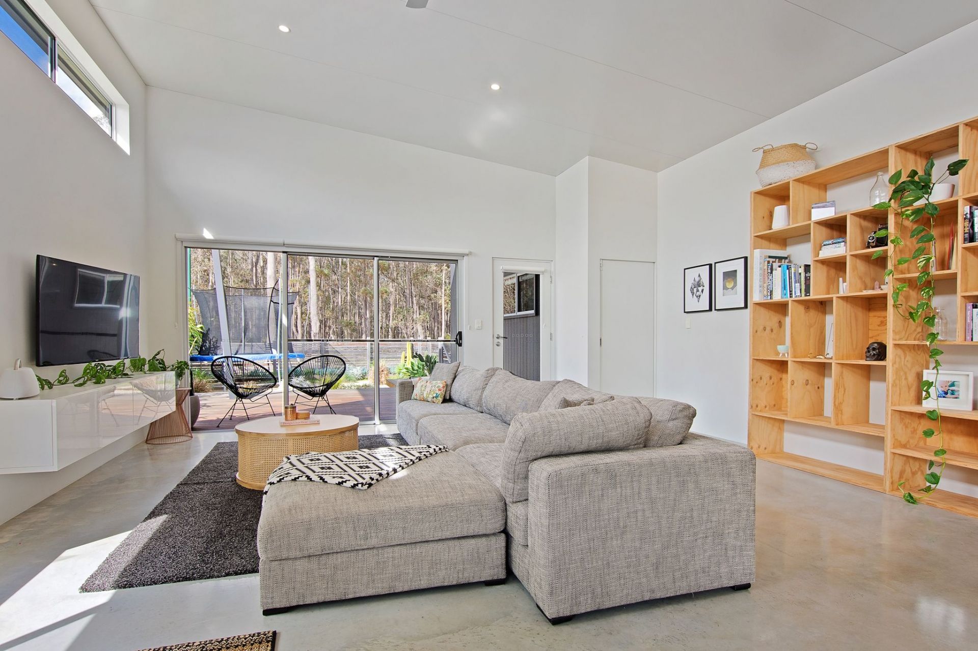 The north facing aspect and high ceilings create a light filled home that is cosy in winter and cool throughout the warmer summer months. A large spotted gum deck wraps around the north and east of the house, providing two protected outdoor areas for entertaining or simply relaxing and enjoying the beautiful forest views.