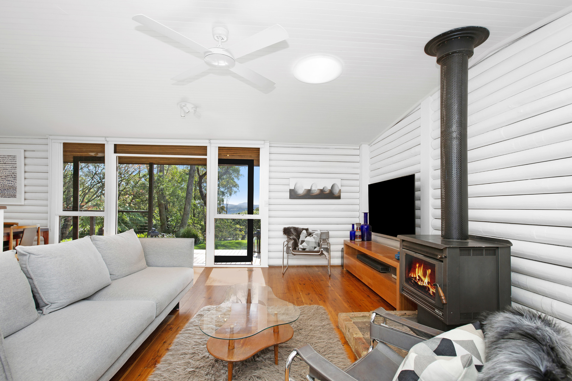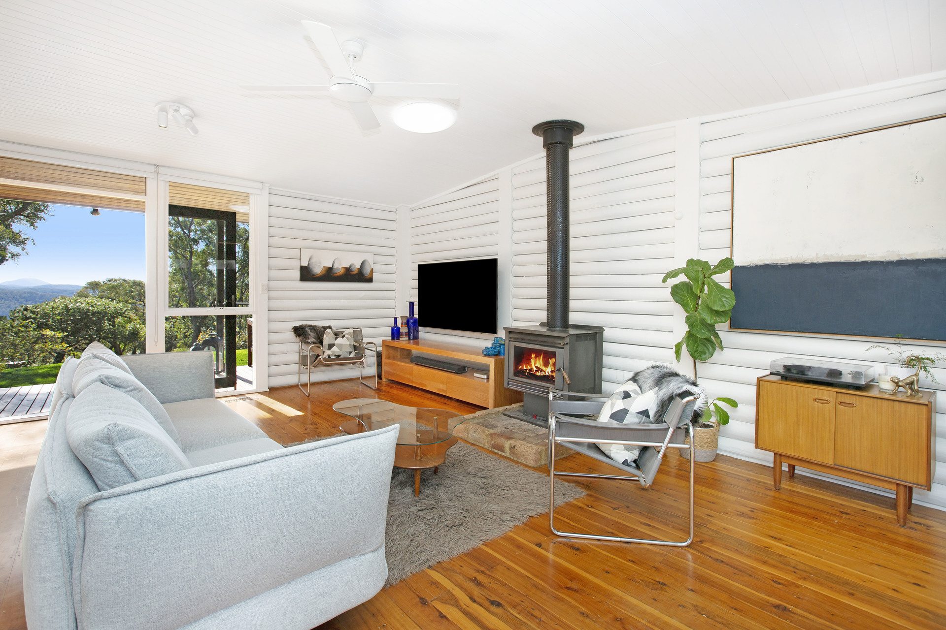 This lovely home has a light filled ambiance, highlighted by floor to ceiling windows, log walls, timber flooring and large north facing decks capturing the amazing view.