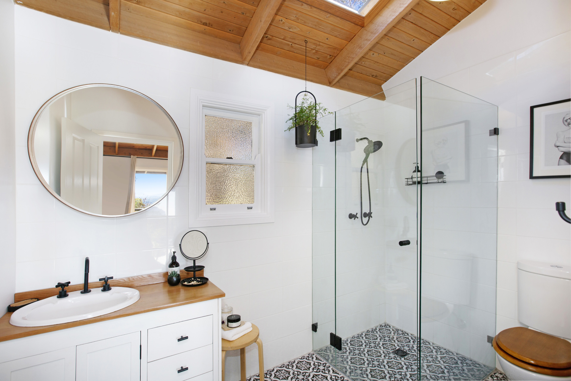 There are 4 bedrooms, 2 bathrooms plus separate powder room and 2 living areas in the main house - most with a northerly aspect.