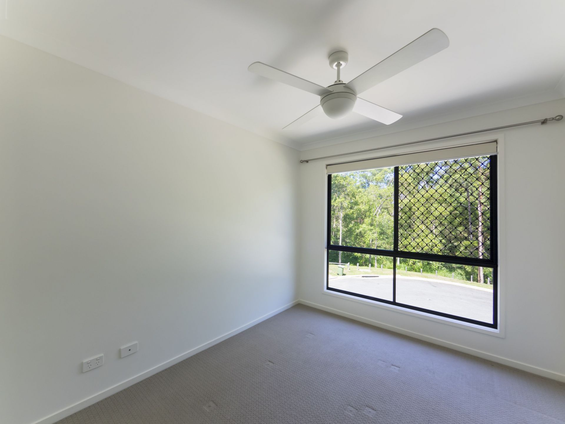 - Main bedroom has built-in-robe and ceiling fan, with views across the cul-de-sac to parkland