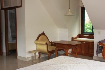The house is very solid. and minor stud walls internally, it features classically designed teak art noveau doors cabinets, glass and balustrades. Also a mammoth pool entertainment area on a lower terrace level, to be completed as a swim pond. eg the Island in the middle is 8m x 6m and form s a "moat" pool with a lap of 50m