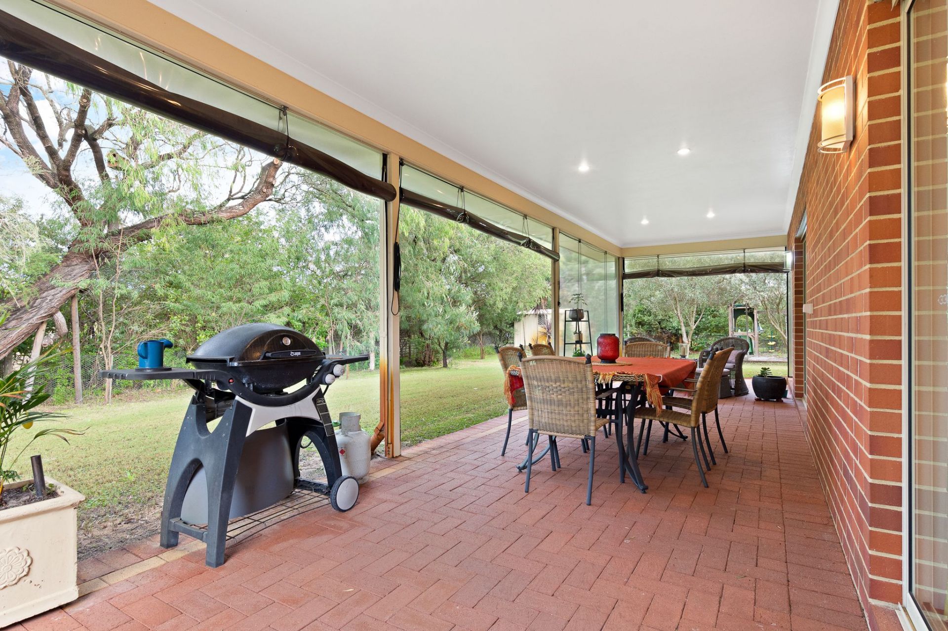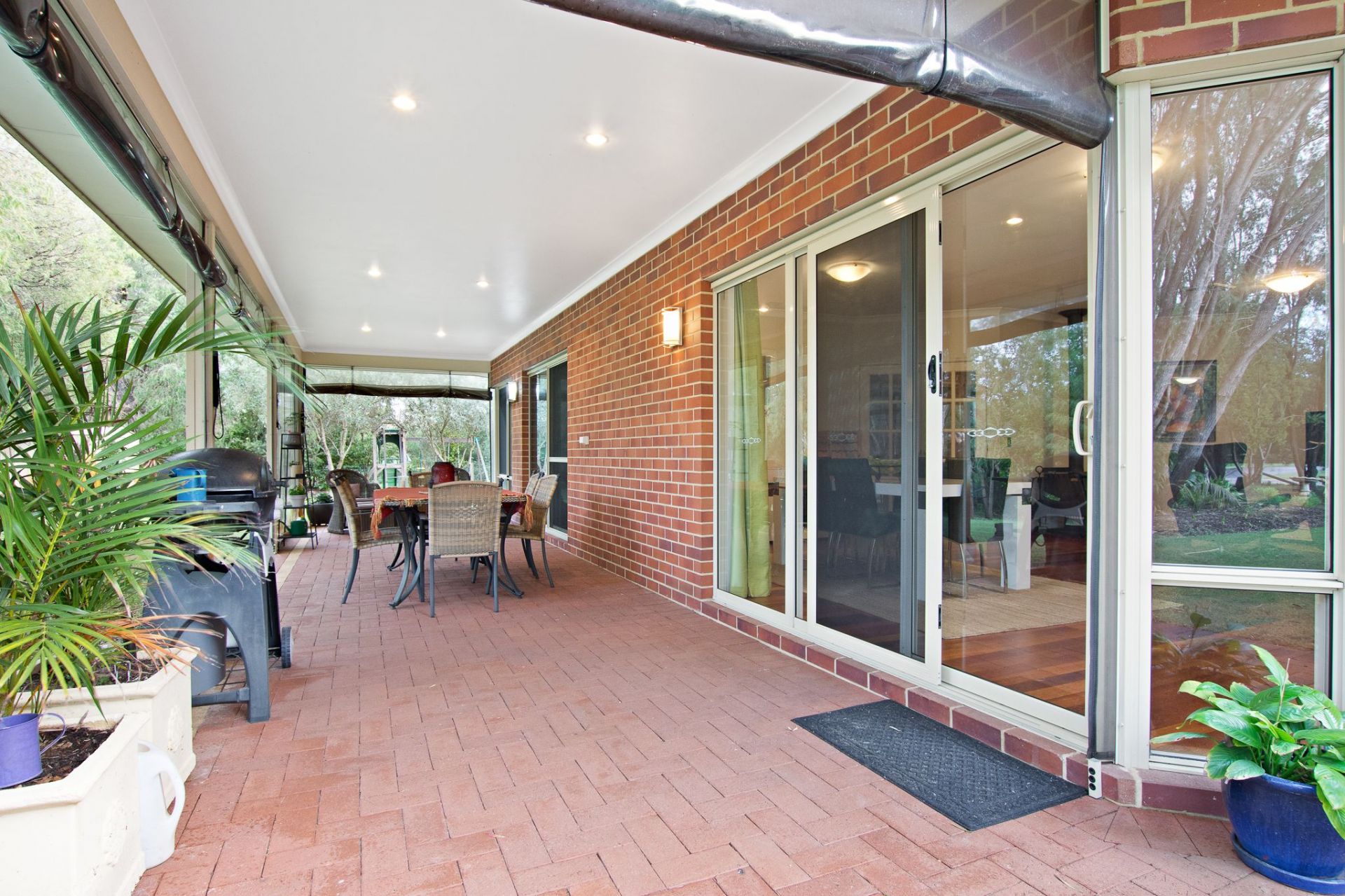 - Expansive paved alfresco with café blinds and down lights