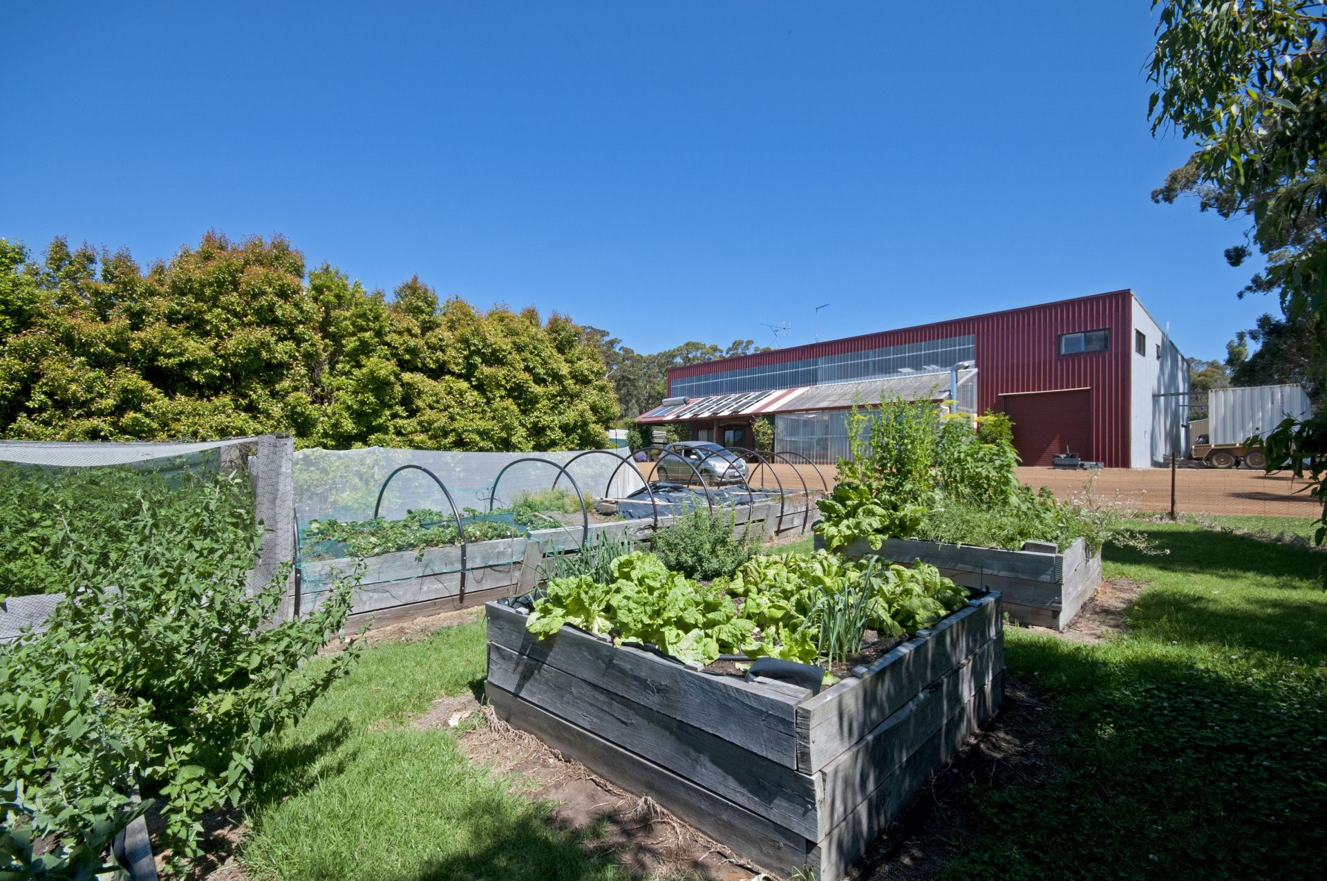 - Australian Native food plantation with several species, mainly lemon, aniseed and cinnamon myrtles, muntries and strawberry gum plants