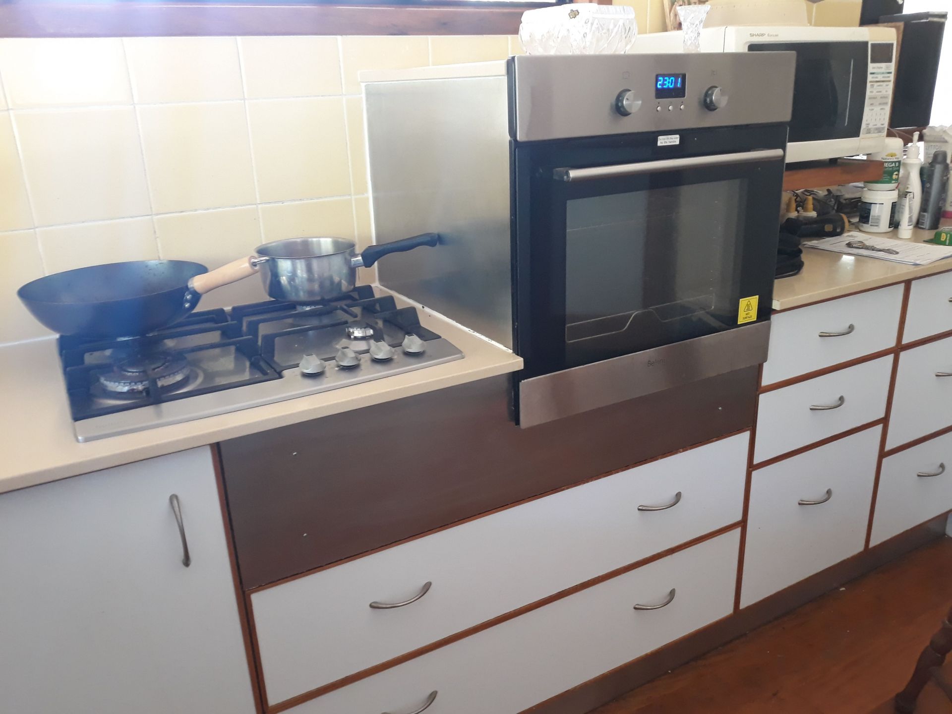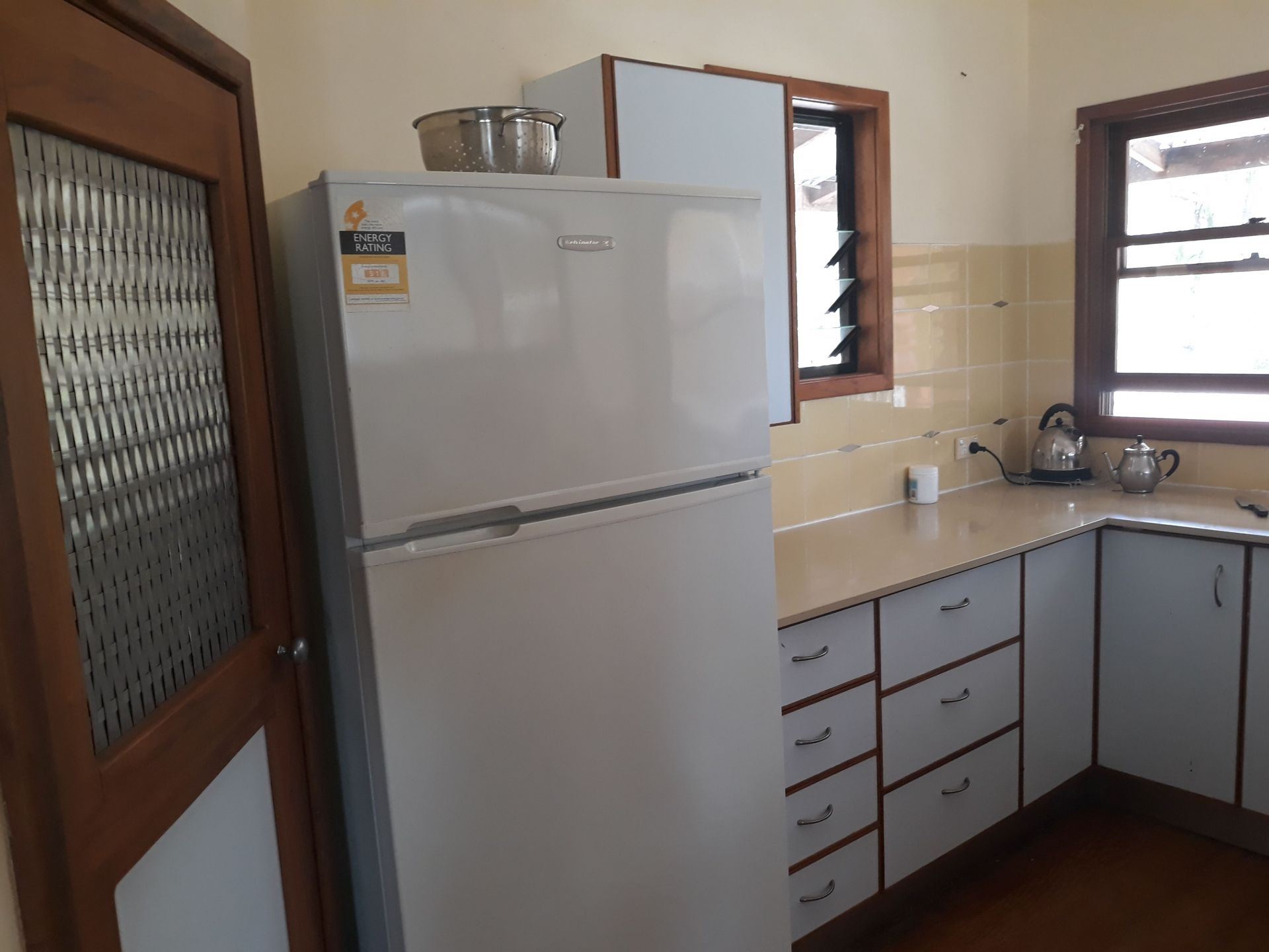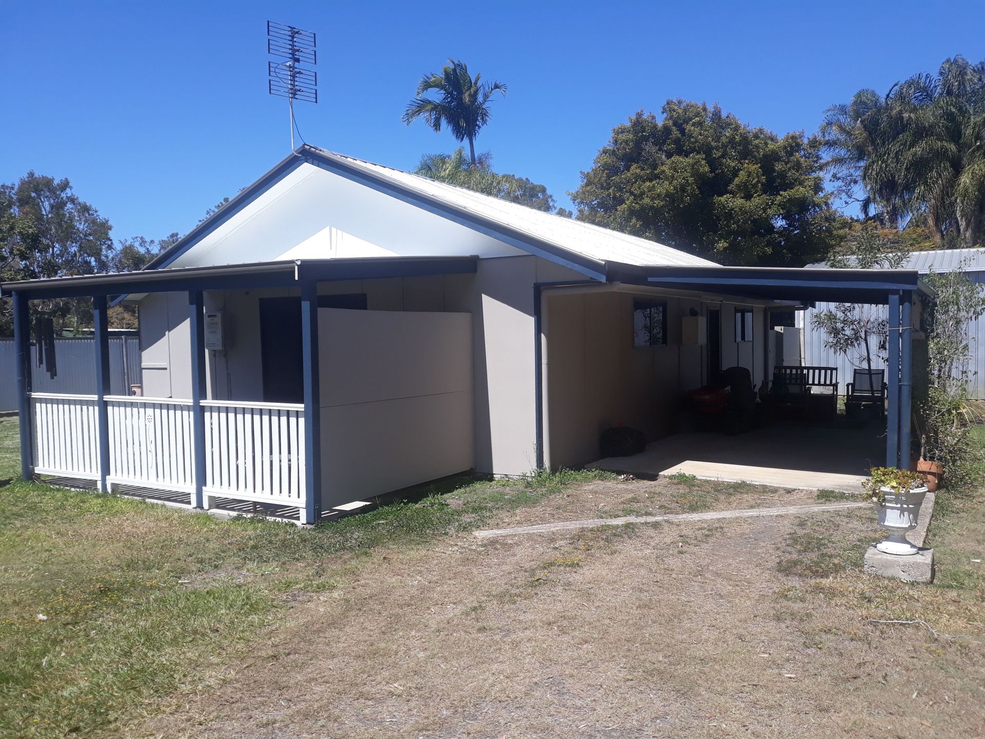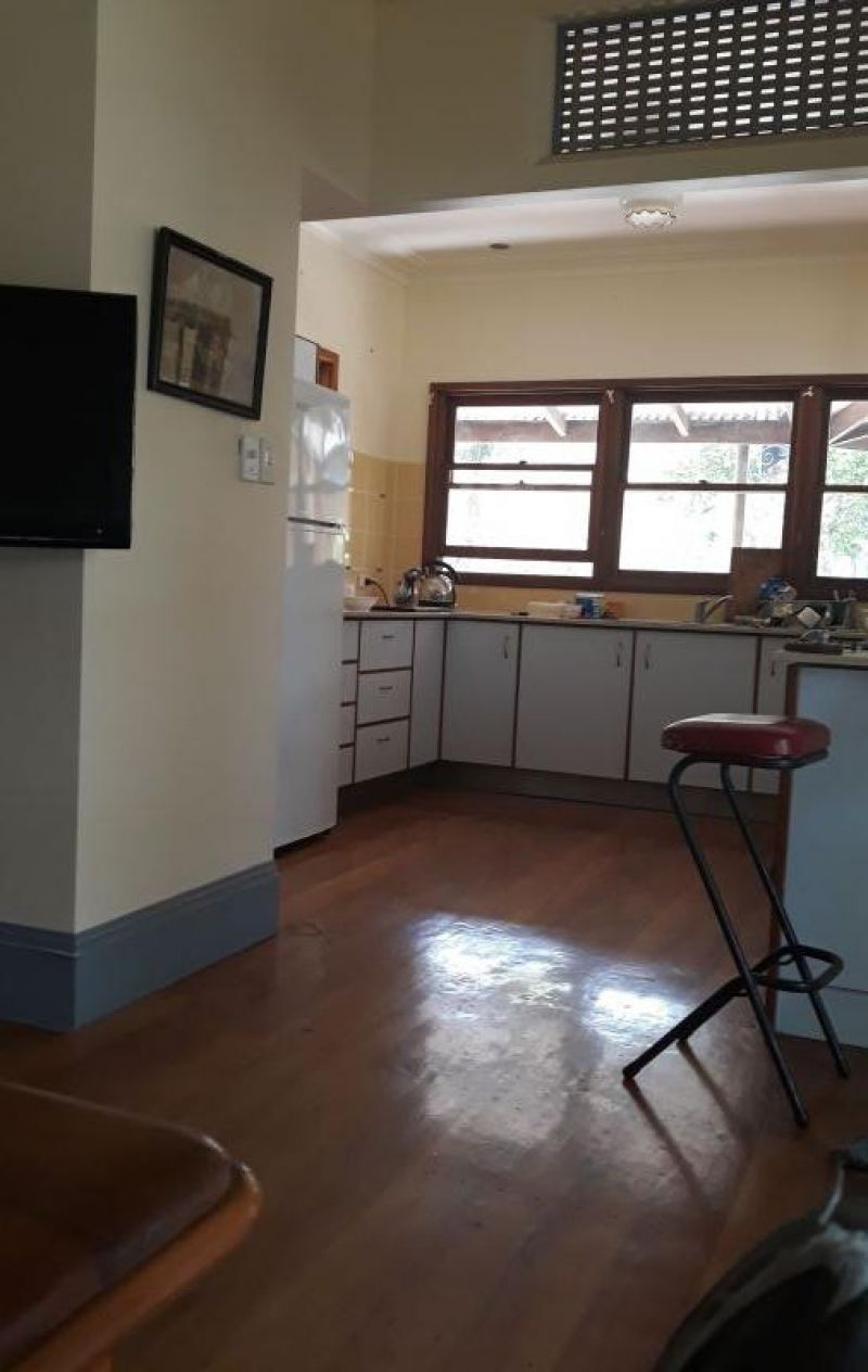 The 3 bedroom main house with kitchen, dining, lounge room, bathroom, improvised laundry.