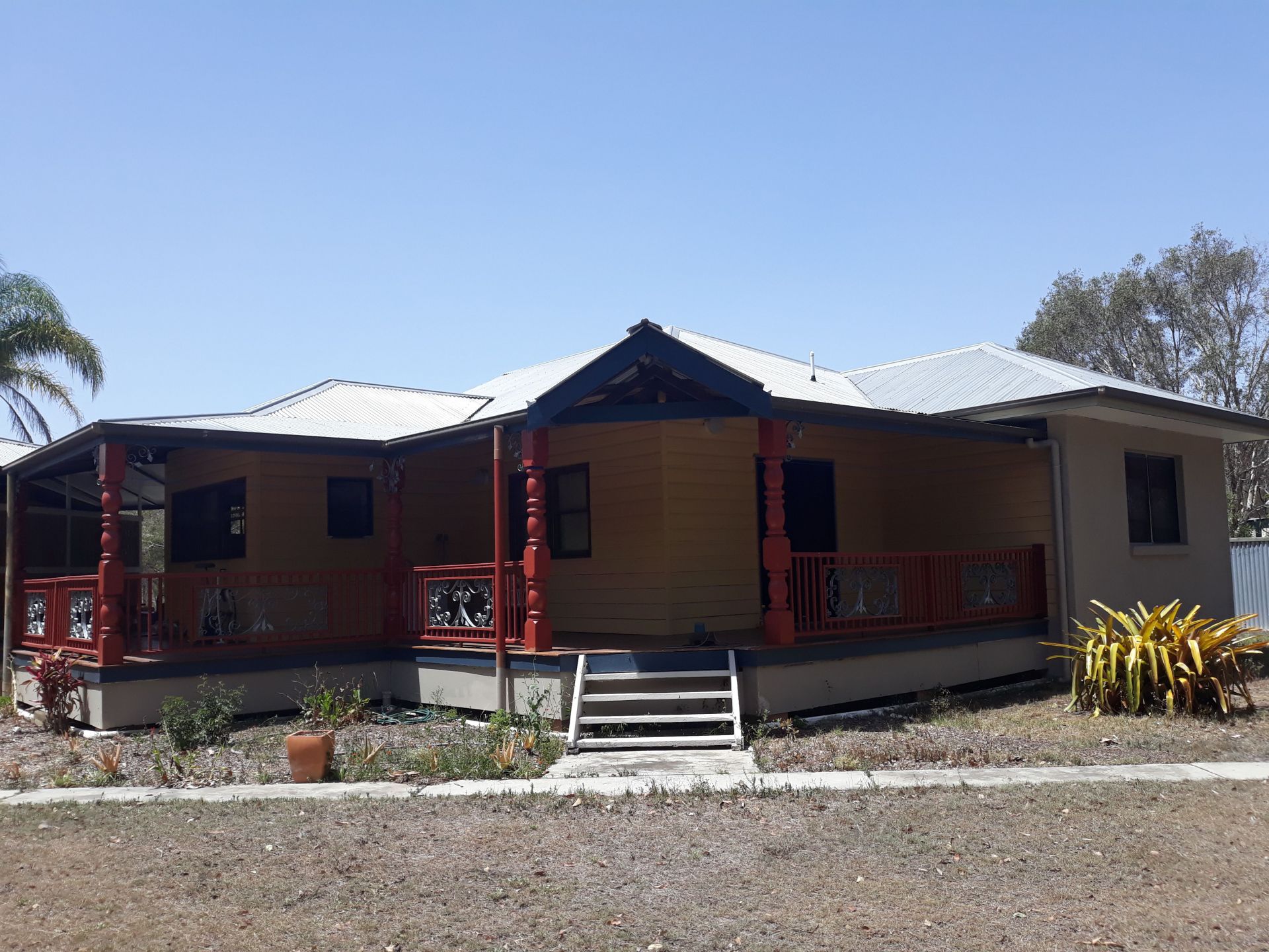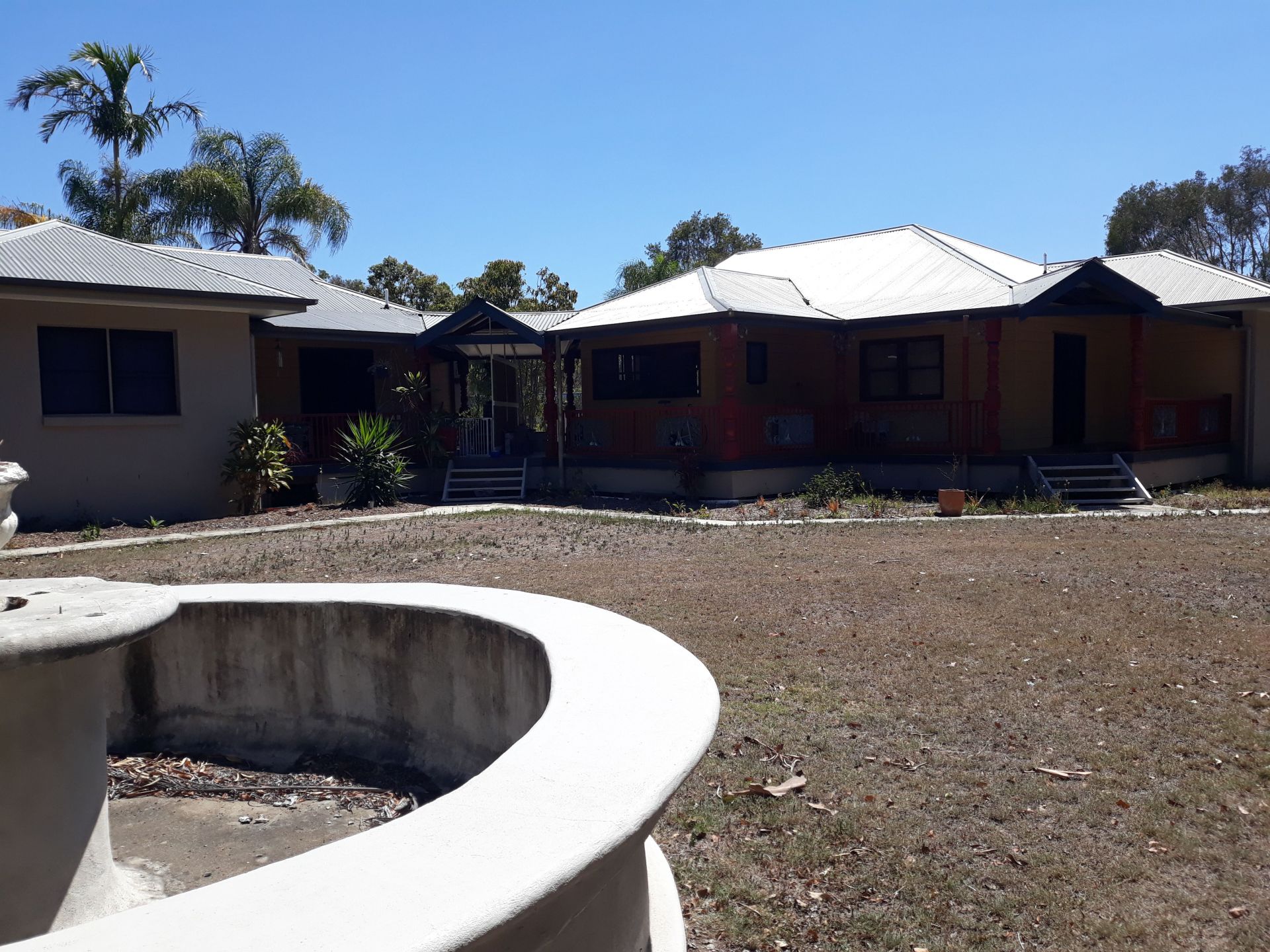 5 or 6 bedroom split living main house with breezeway verandah between the main living area and the two bedroom secondary living space.