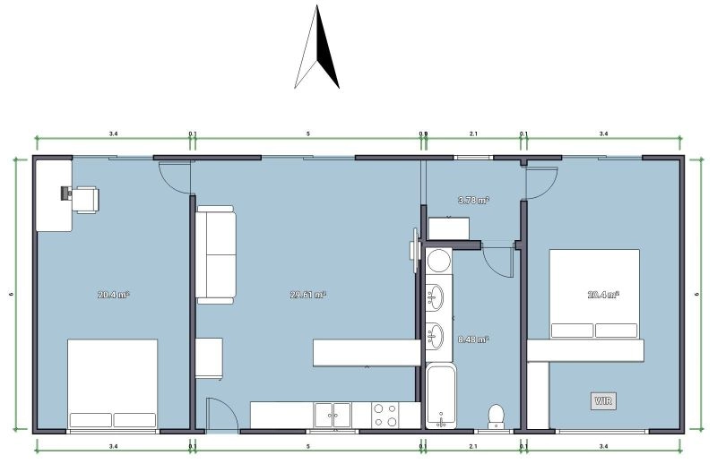 The open plan kitchen living space has reverse cycle Fujitsu air-conditioning, ceiling fan, NBN broadband and large sliding doors opening to the North where you can relax on the verandah and enjoy nature. The bathroom has beautiful premium tapware, white shaker style cabinetry, oak vanity top and a deep soaking tub with views of the sky via a Velux double glazed skylight.