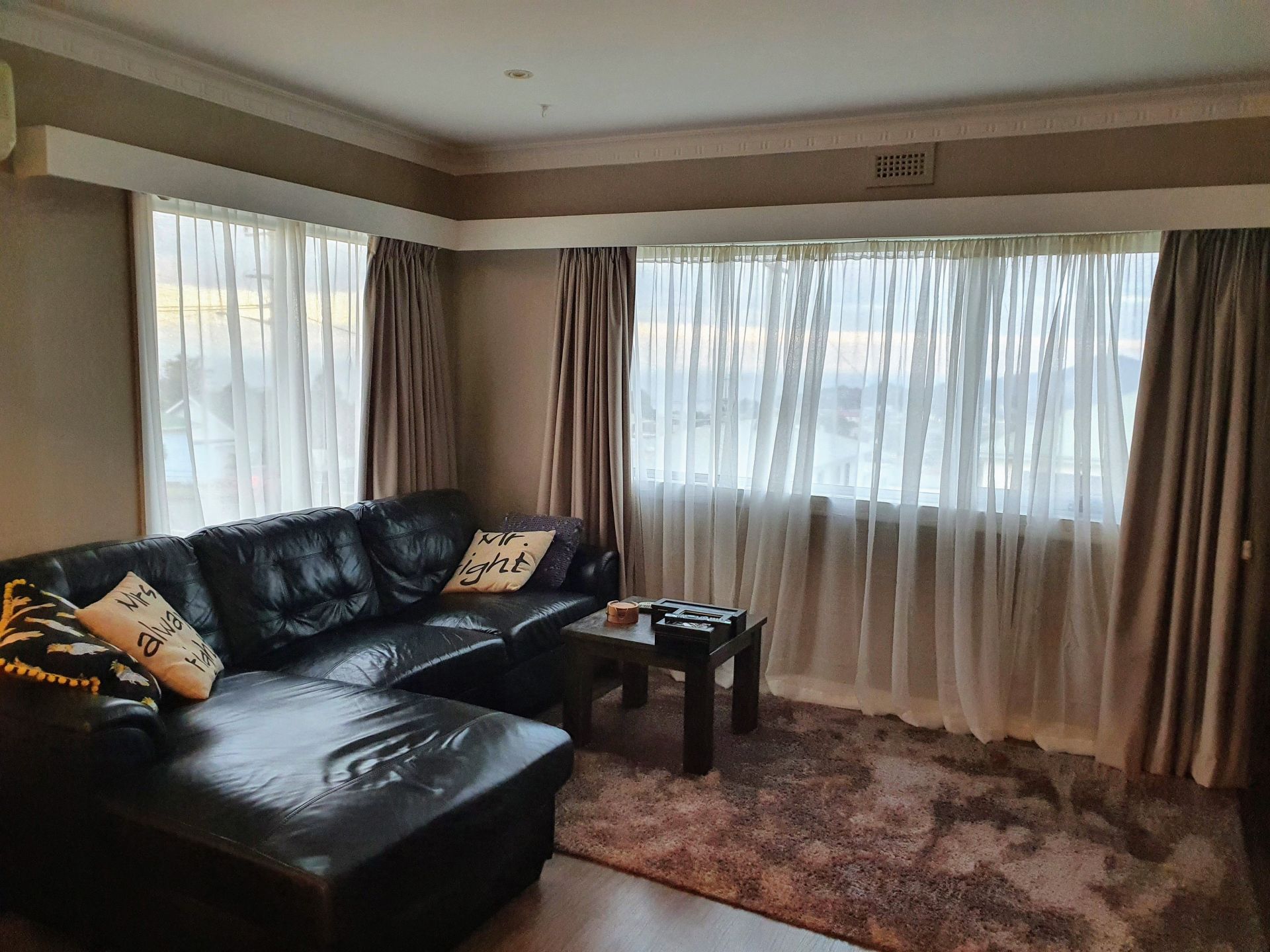 2 lounge rooms both have heatpumps , 1 with views out to round hill the other is 43 sq meters and filled with sunlight all day opening onto covered entertainment area.